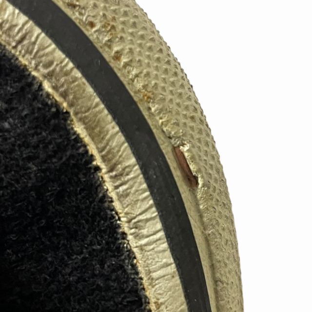踵のレザー部分に破れがあり、ソールに減りがございますが、現状は着用可能な状態です。