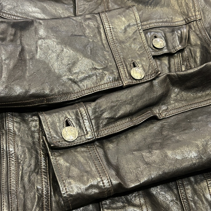 - レザー特有の傷やシワ等の着用感がございますが、目立つ汚れやダメージ等は無く、まだまだ問題無く着用していただける状態です。