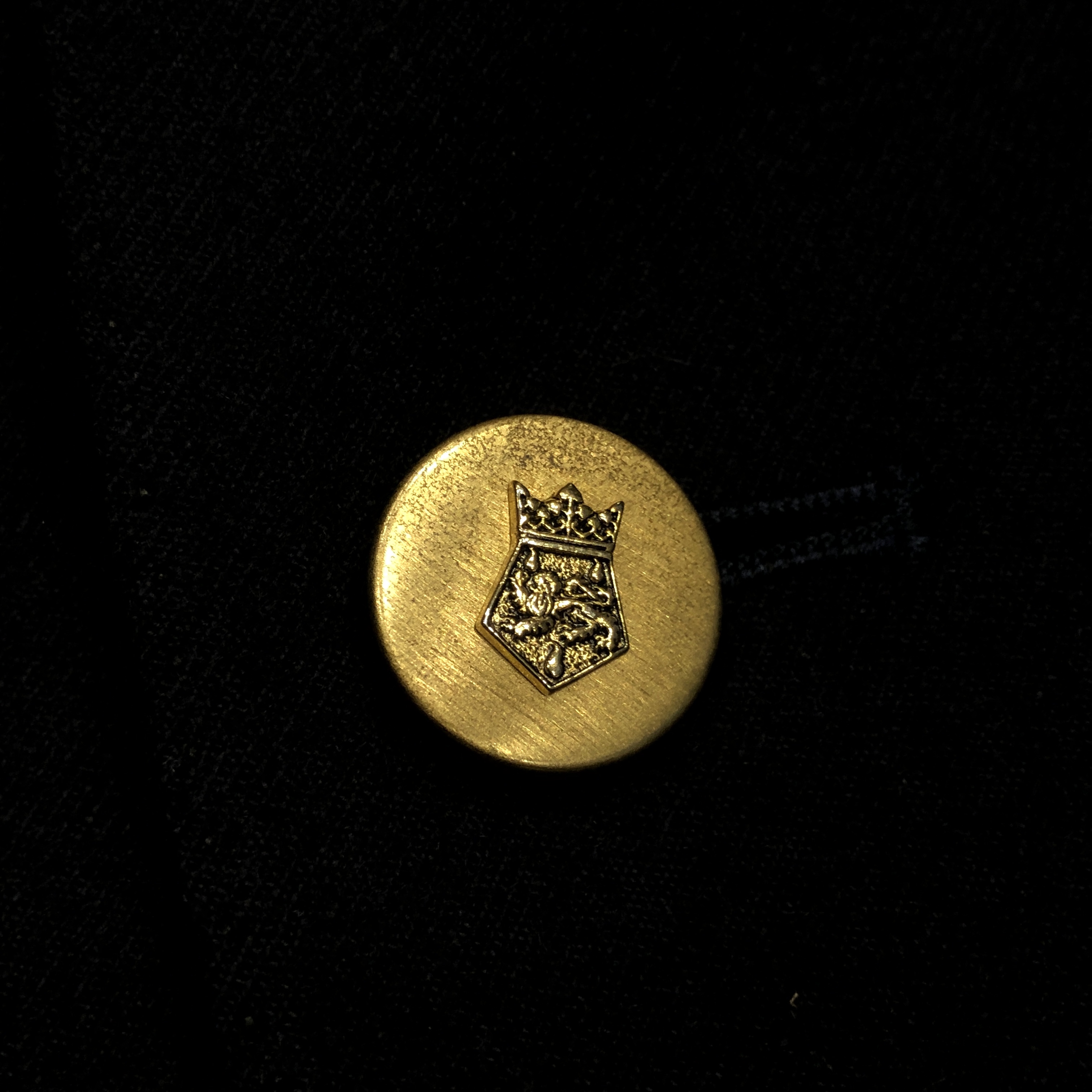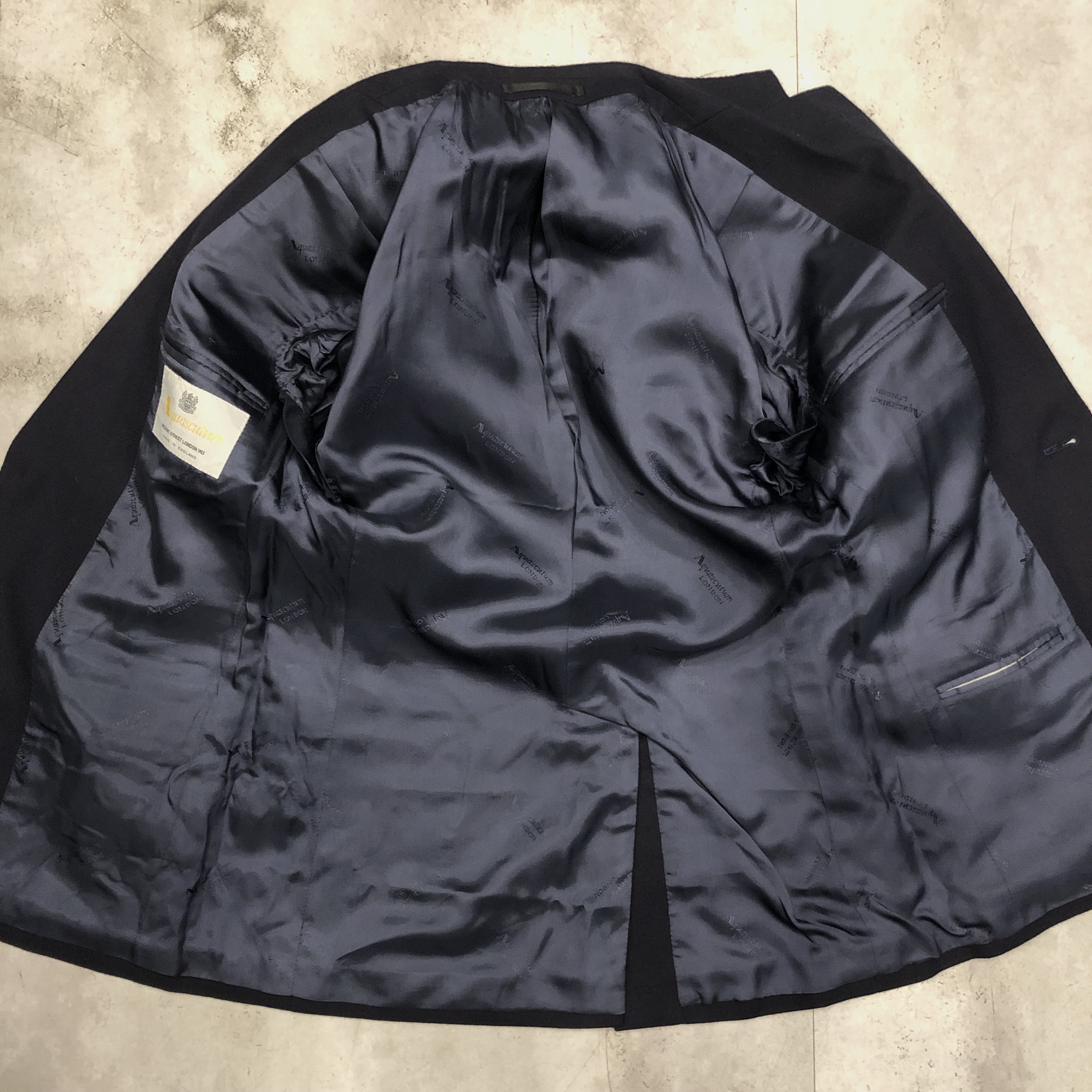 ライニングにまで散りばめられたロゴ、重厚感ある金ボタン、まさにクラシック・ブリティッシュの美学を体現したようなブレザーです。