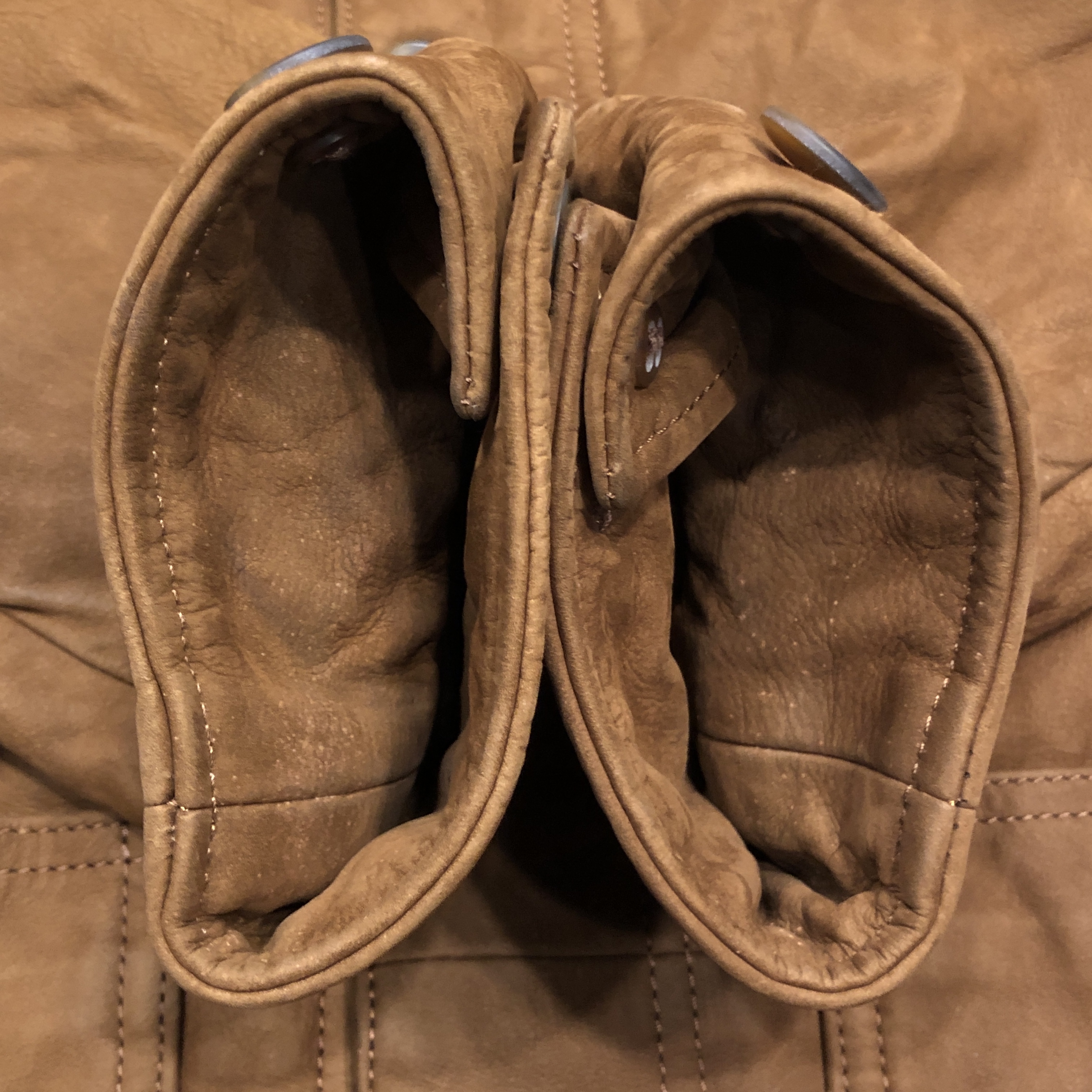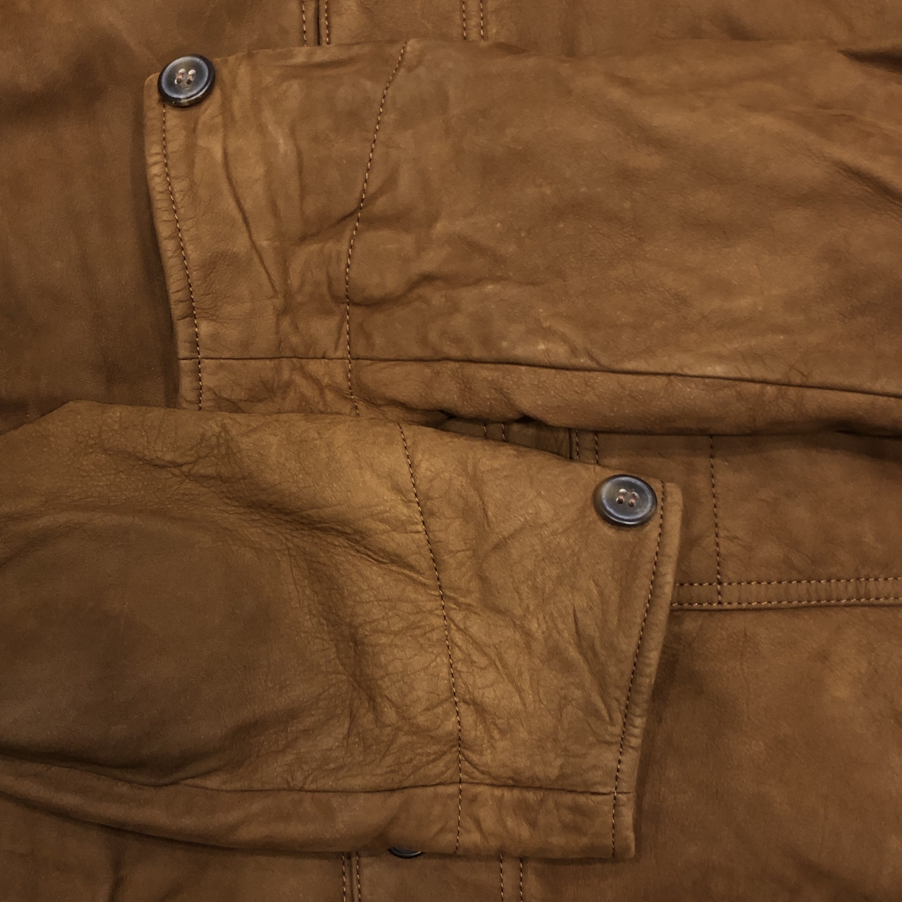 しっとりとした起毛面の質感が素晴らしく、着込むほどに色が濃く沈み、皺が刻まれ、唯一無二の表情へと変化していきます。新品では絶対に出せないこの “育ち具合” がたまりません。