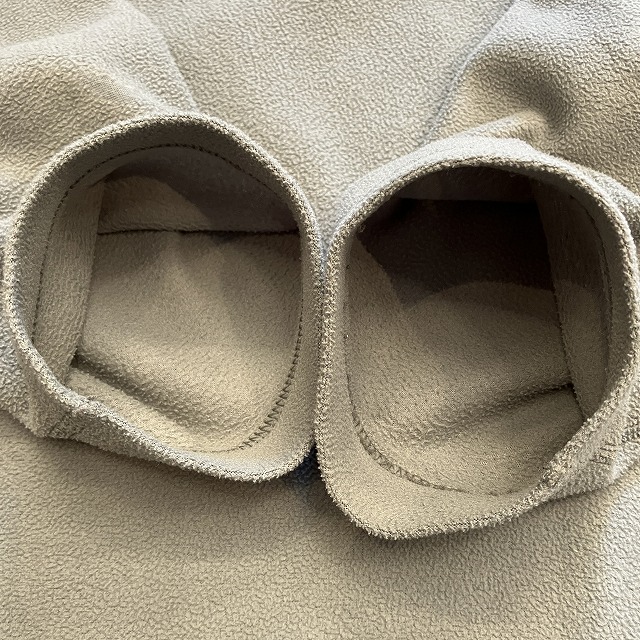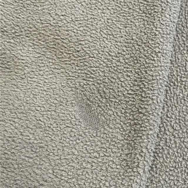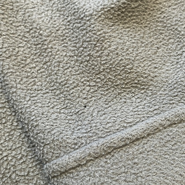 - ボディ正面中央や、左袖先部分に小穴がみられます。また、両袖に若干の毛潰れがみられます。その他、スレ等の着用感ございますが、まだまだ問題なく着用していただけます。