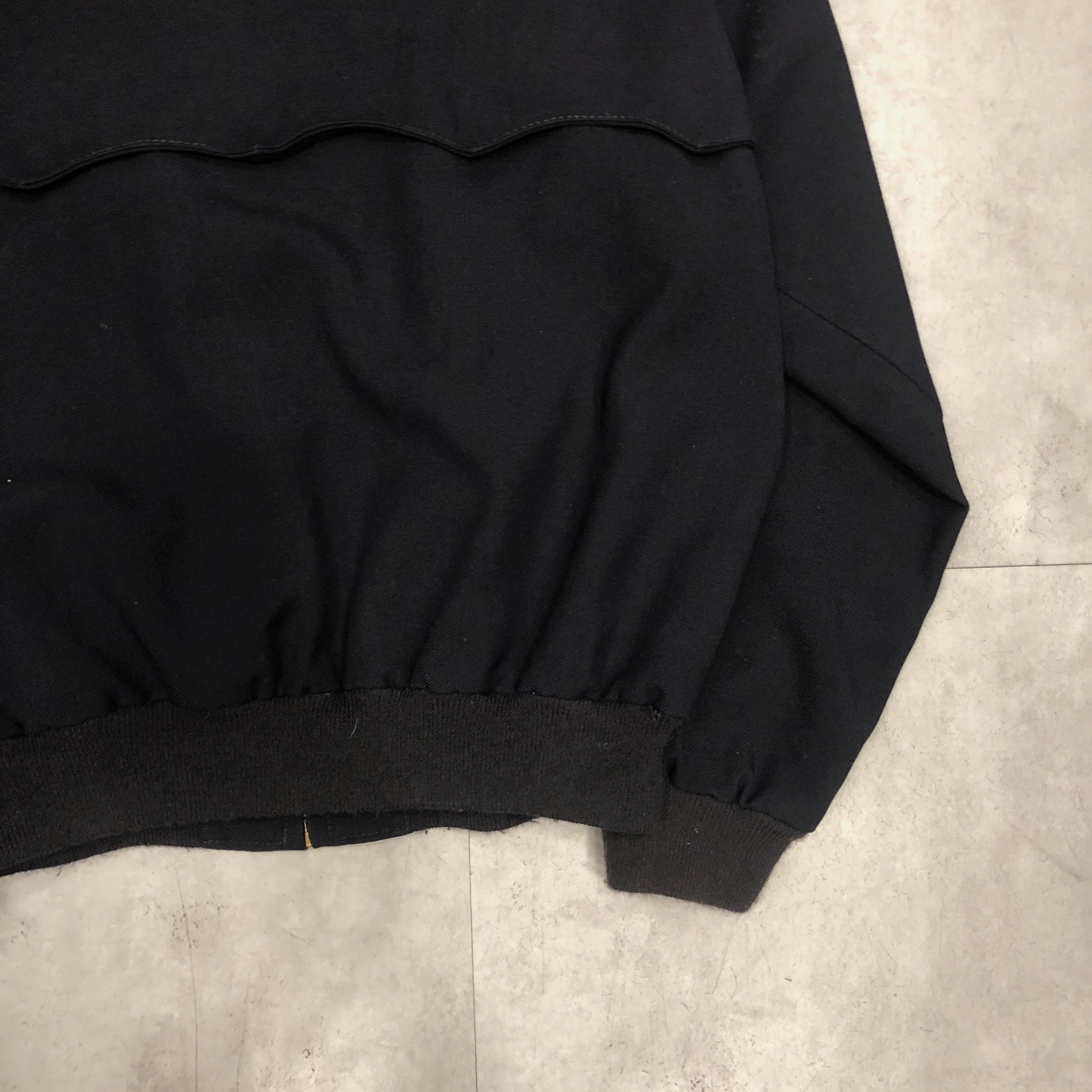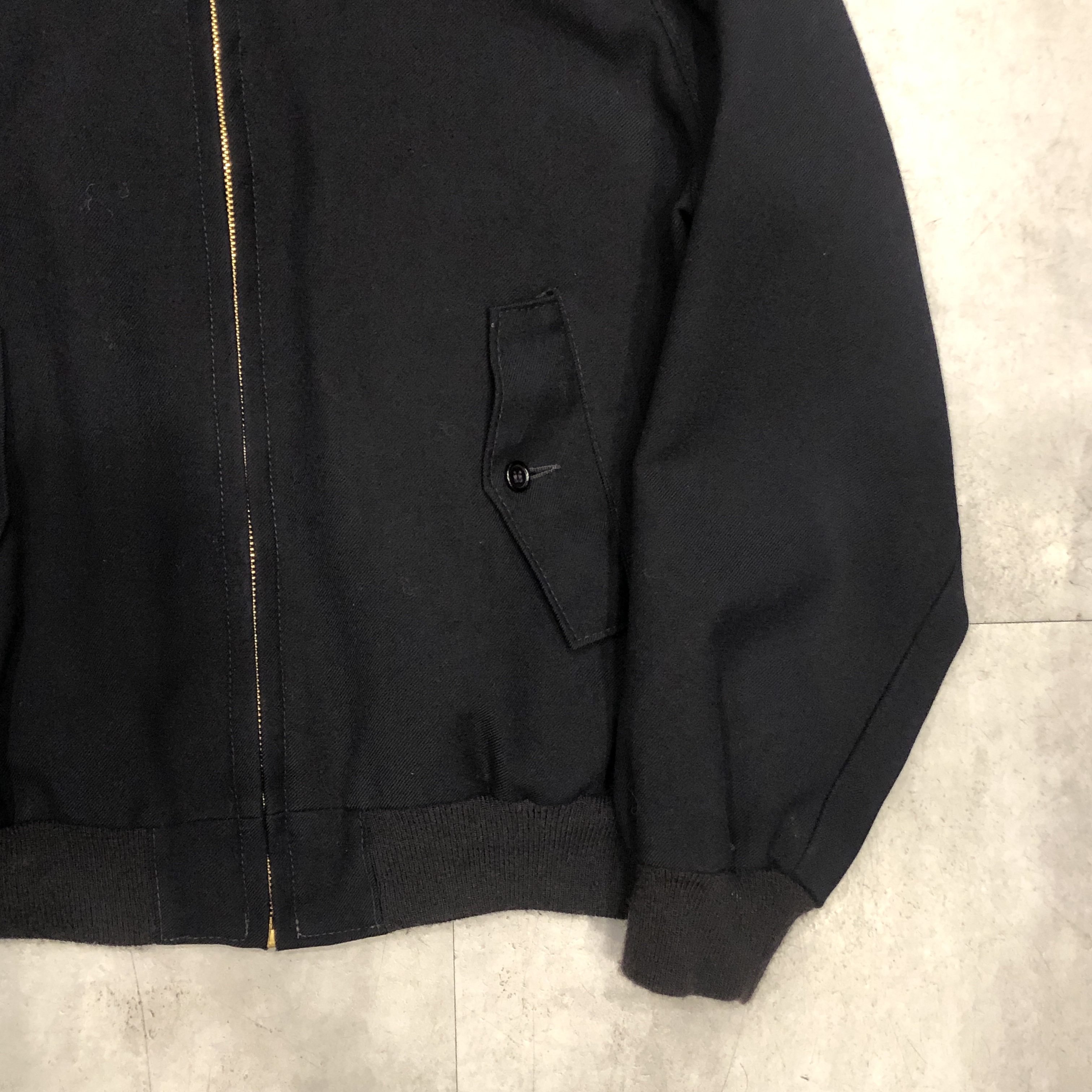 ウールギャバジンならではの深いネイビーの光沢、しっとりとした落ち感、柔らかく体に馴染む質感は、現代の生地では再現が難しく、ヴィンテージ特有の“時間の重み”が宿っています。スタンドカラー+チンストラップ、ラグランスリーブ、裾と袖口のリブ仕様、ゴールドのフロントジッパー、背面ヨークの独特なカッティングなど、ハリントンジャケットのスポーティさと上品さが絶妙に同居する、当時のバナリパらしいデザインも魅力です。