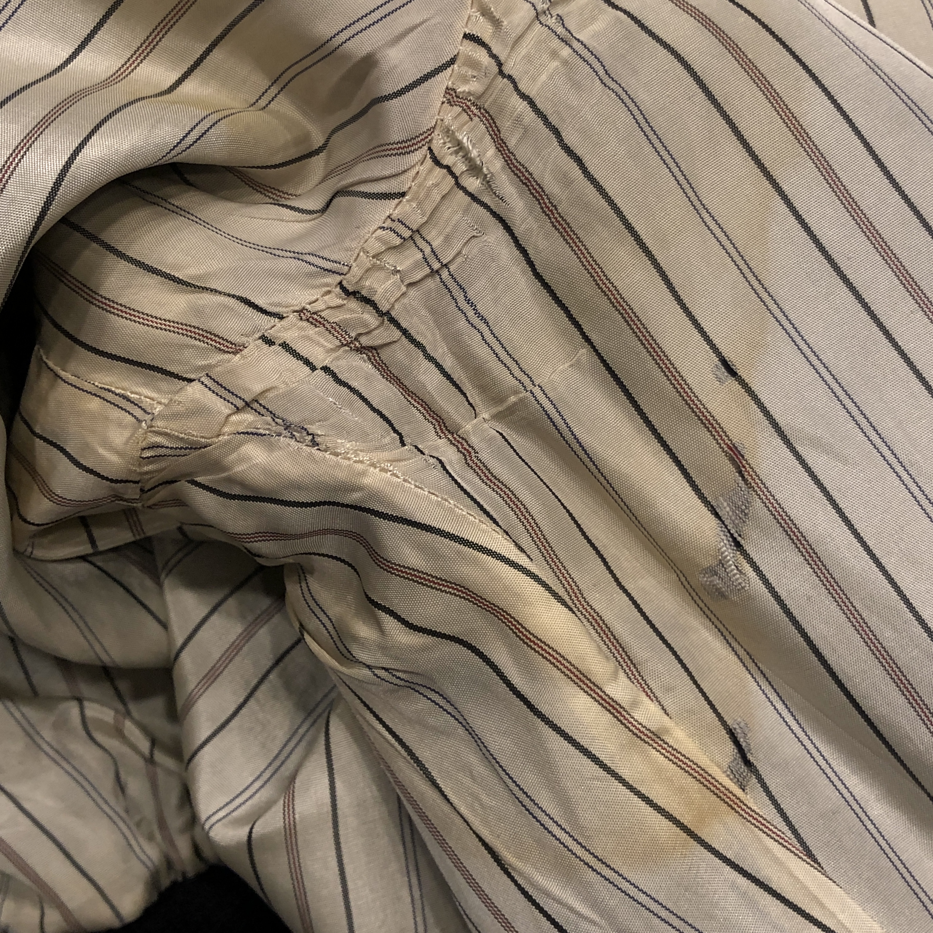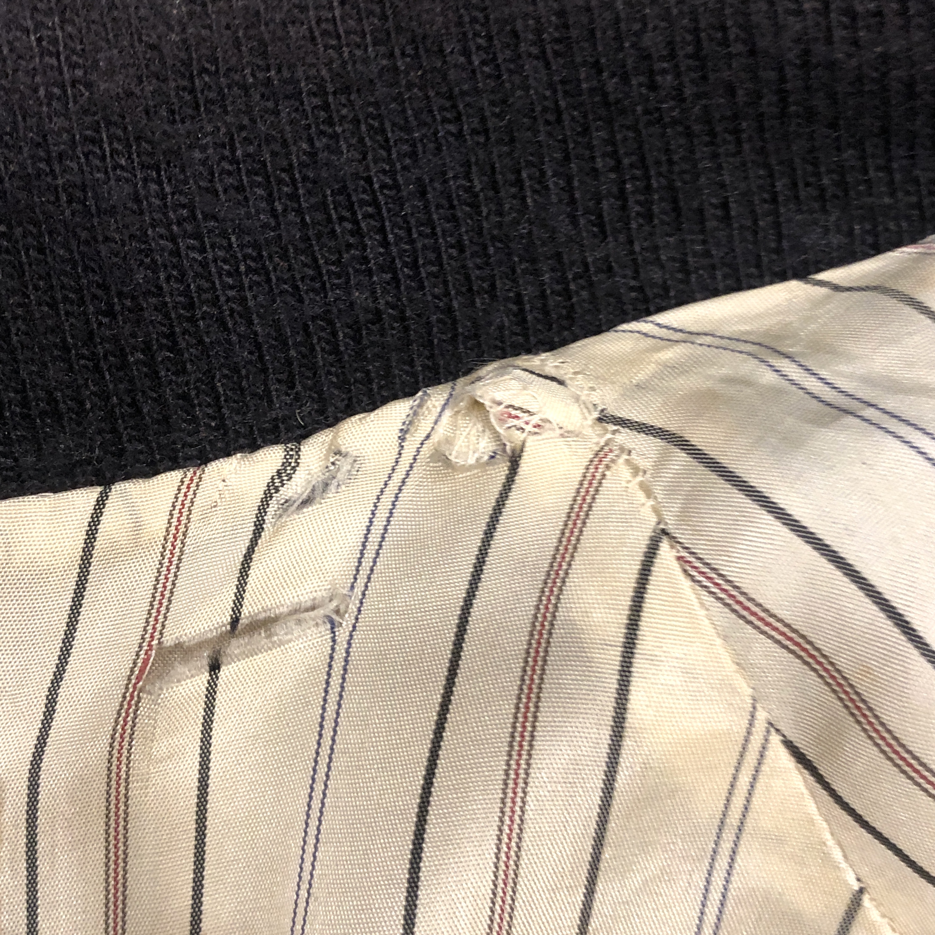年代相応の着用感、リブの毛羽立ちとダメージ、ステッチのホツレ、内側のダメージと脇下のシミ等が画像の様にございますが、ヴィンテージ慣れされた方でしたら問題なく着用していただける範囲です。