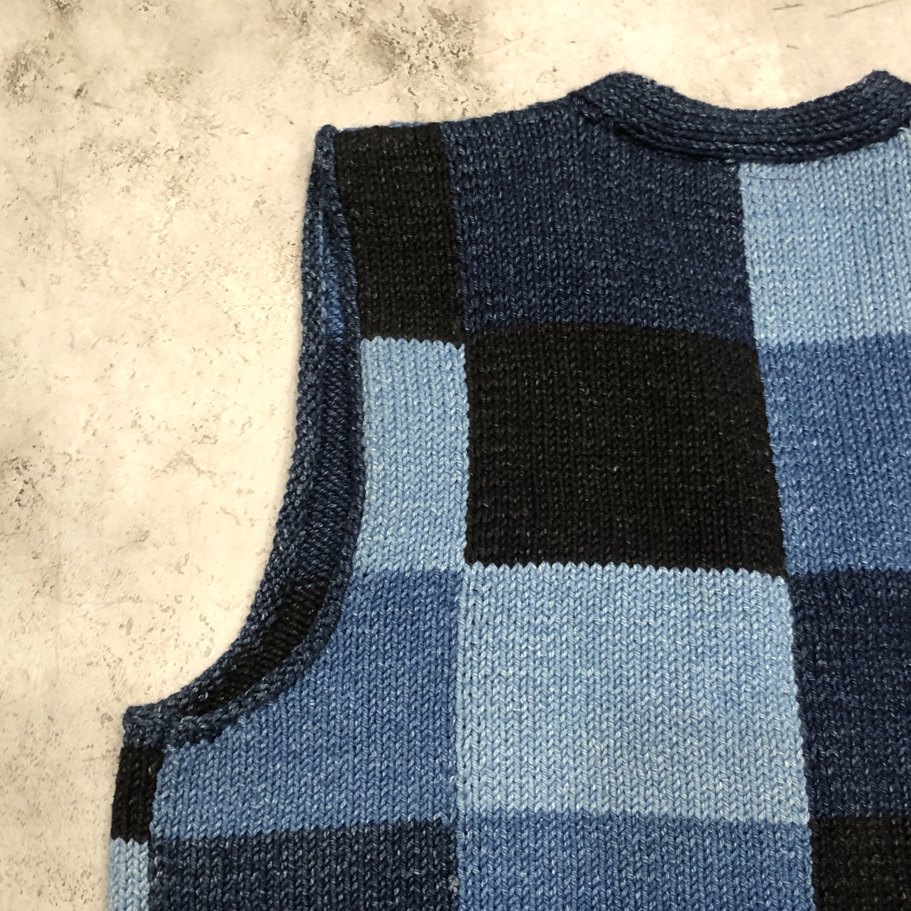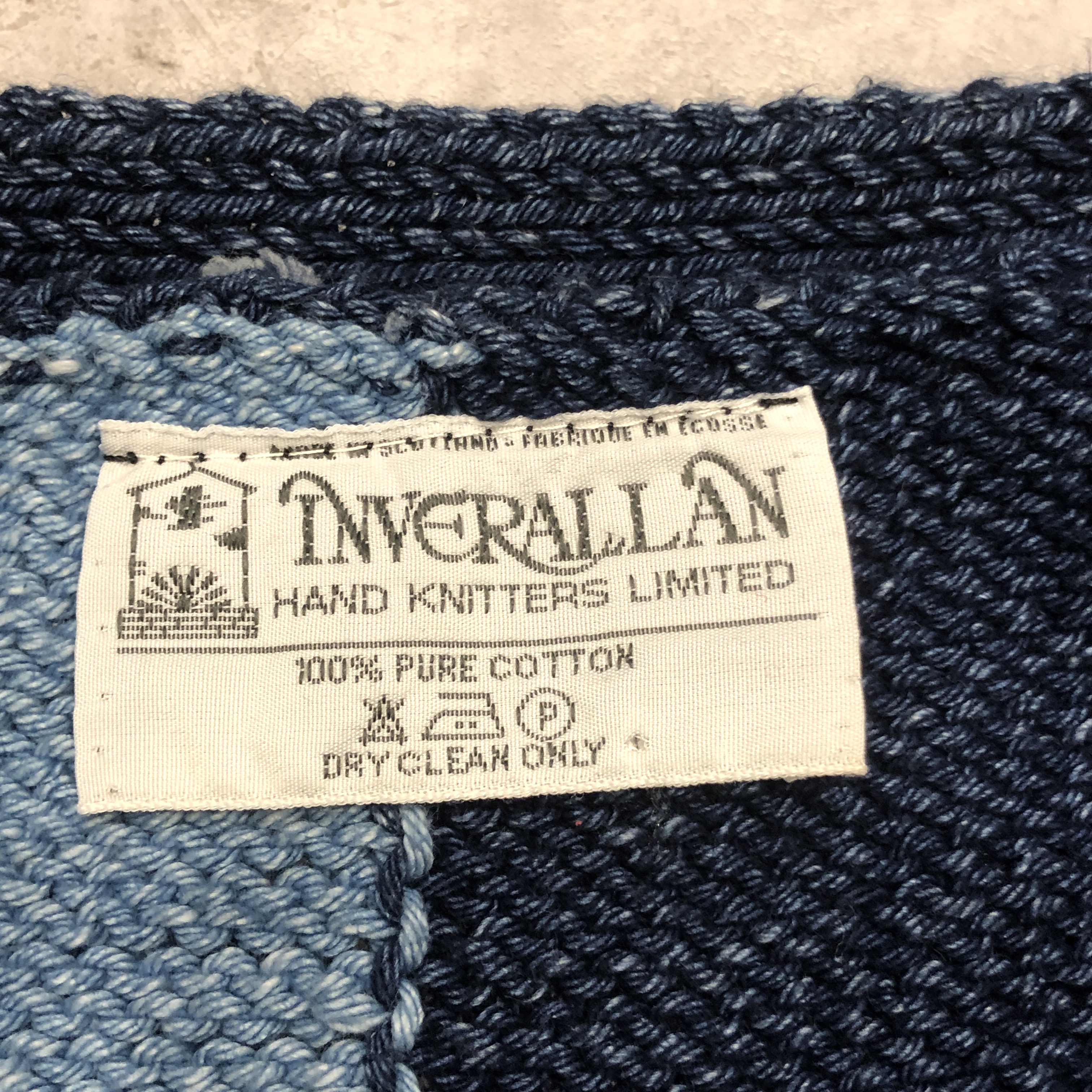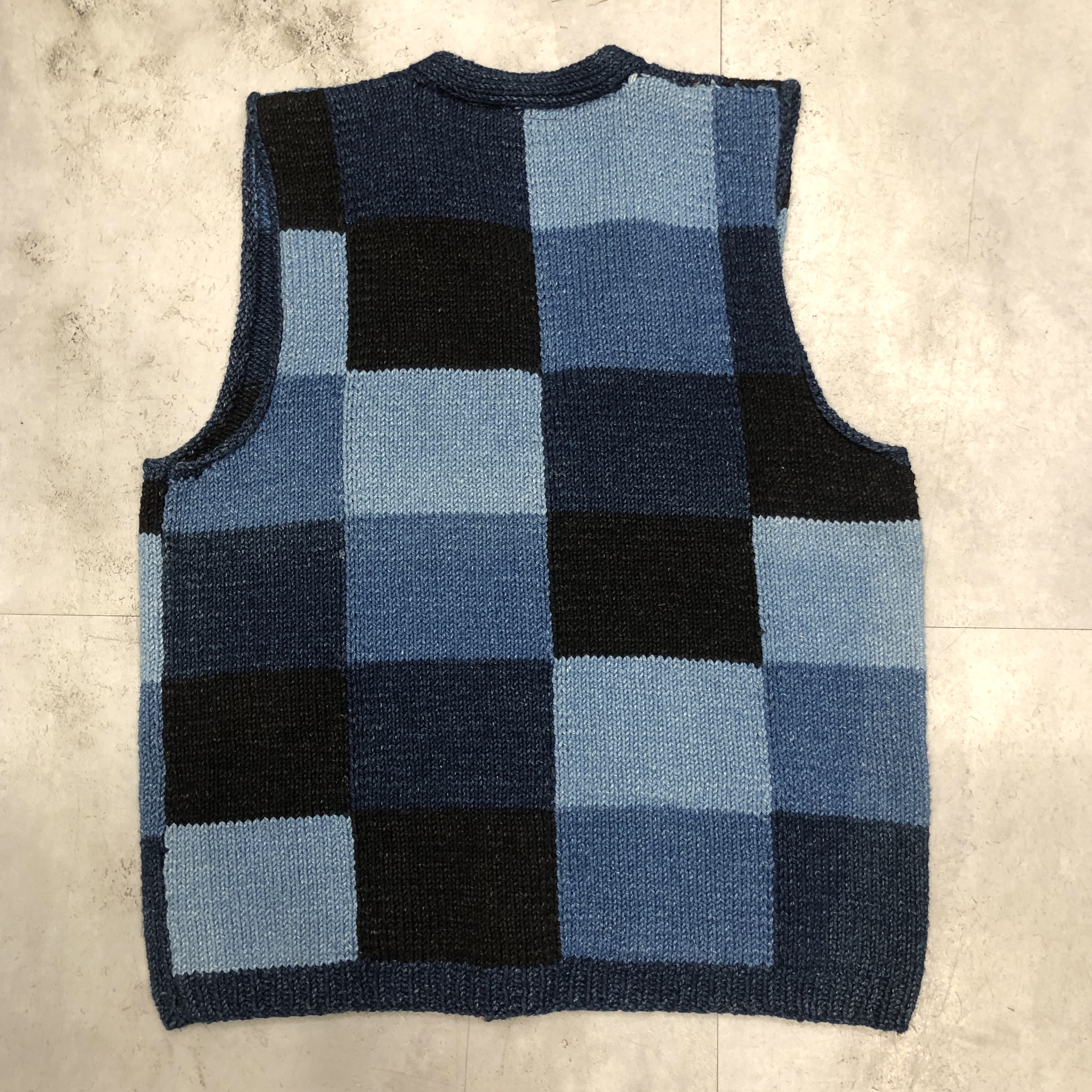 - スコットランド西岸、クライド湾沿いの小さな港町で、熟練のニッターによって一針一針編み上げられる〈INVERALLAN〉。こちらはインディゴニットベスト、コットン仕様です。
