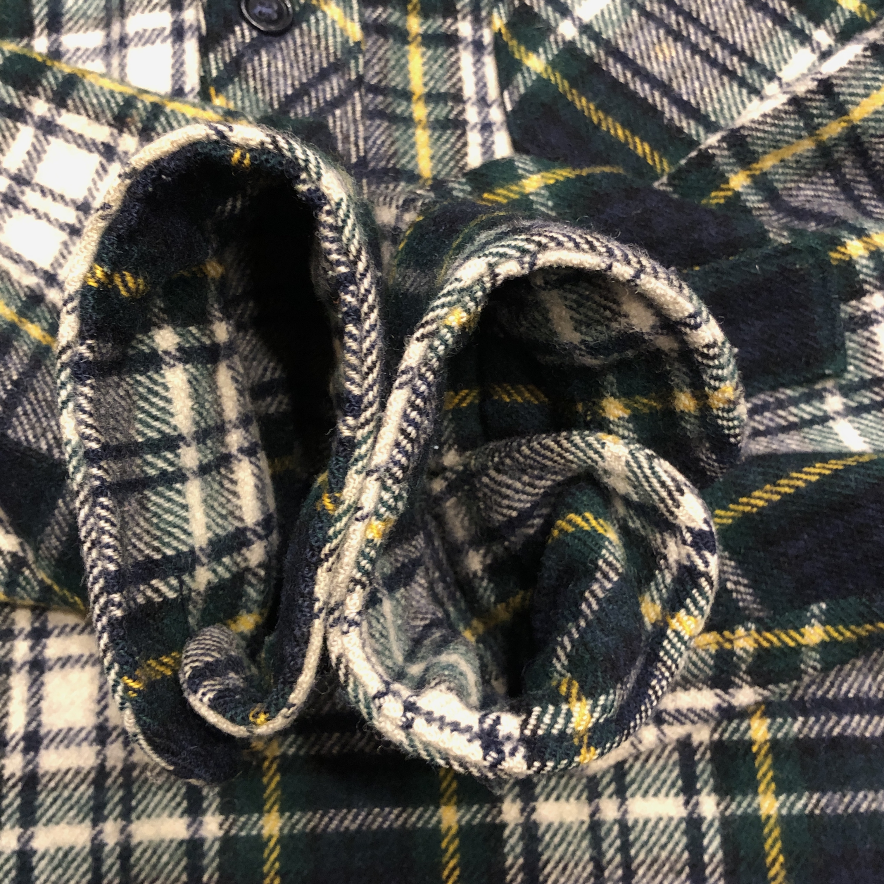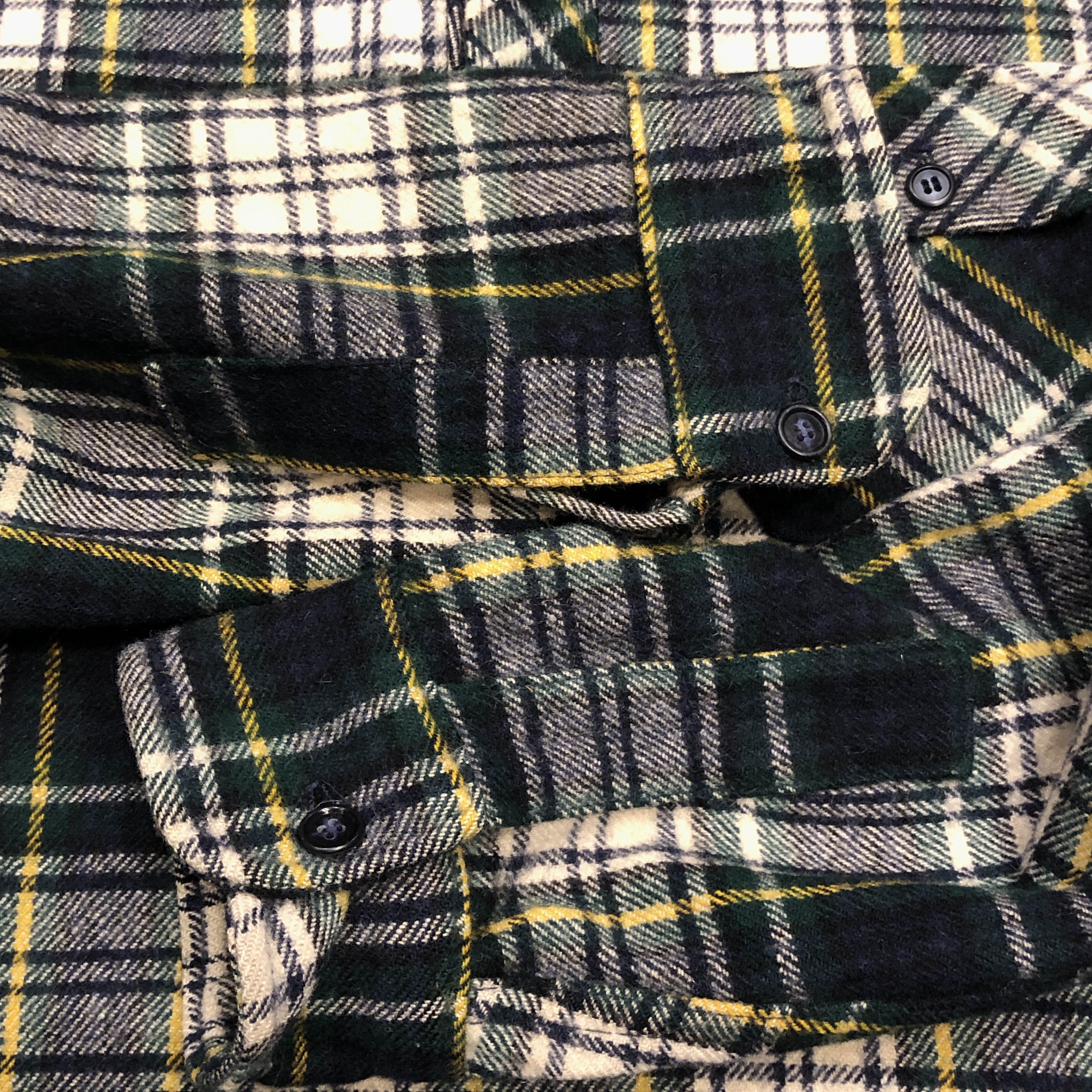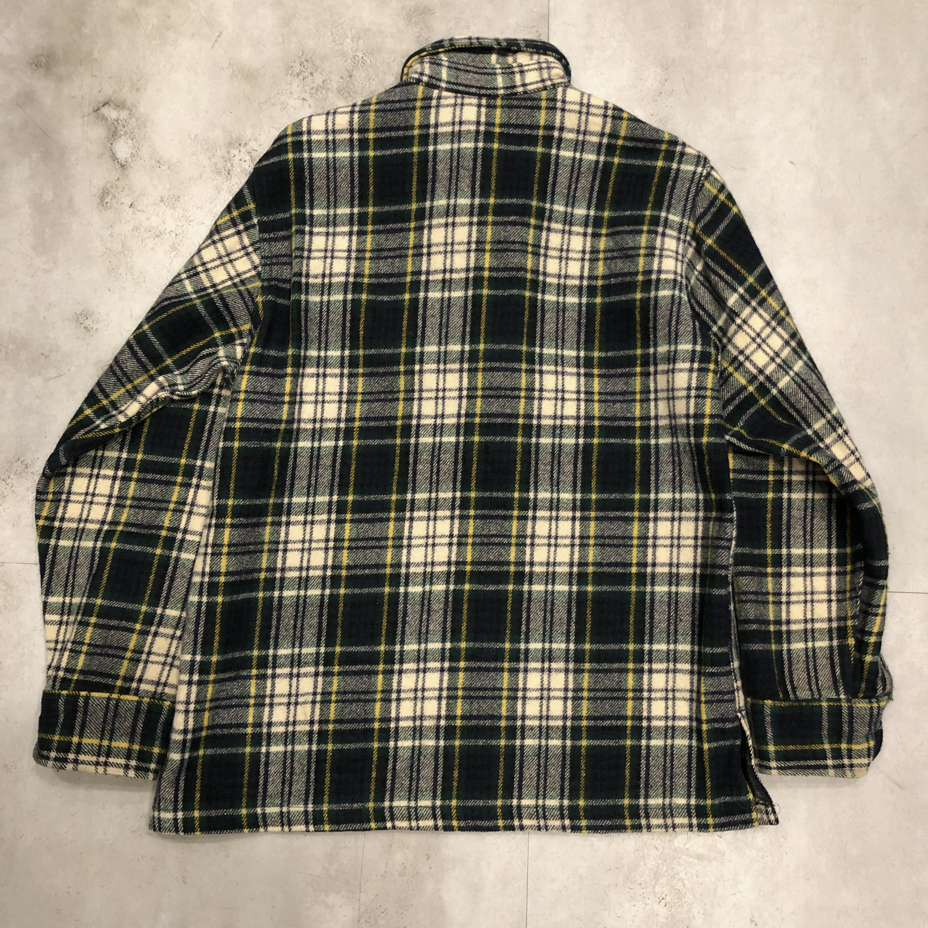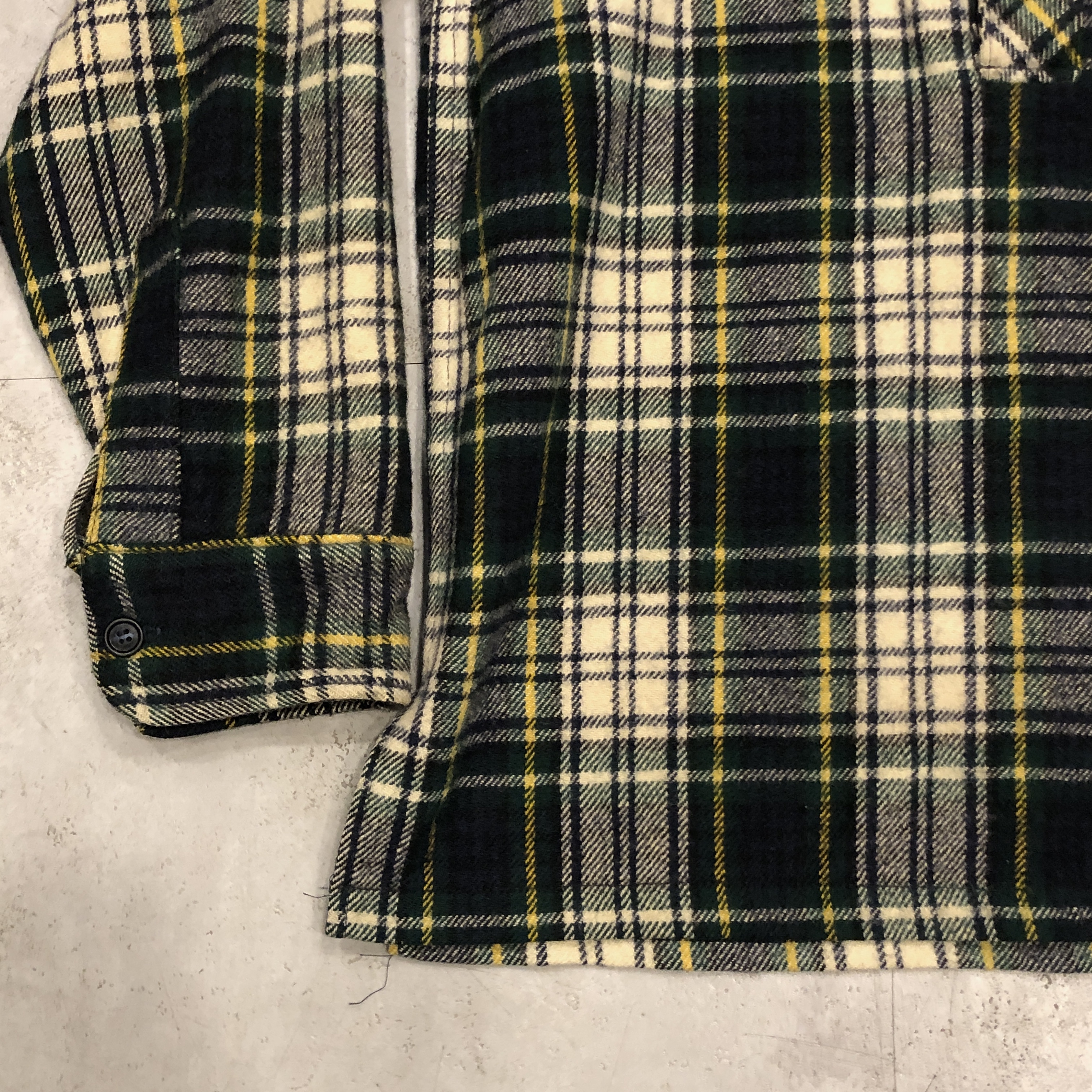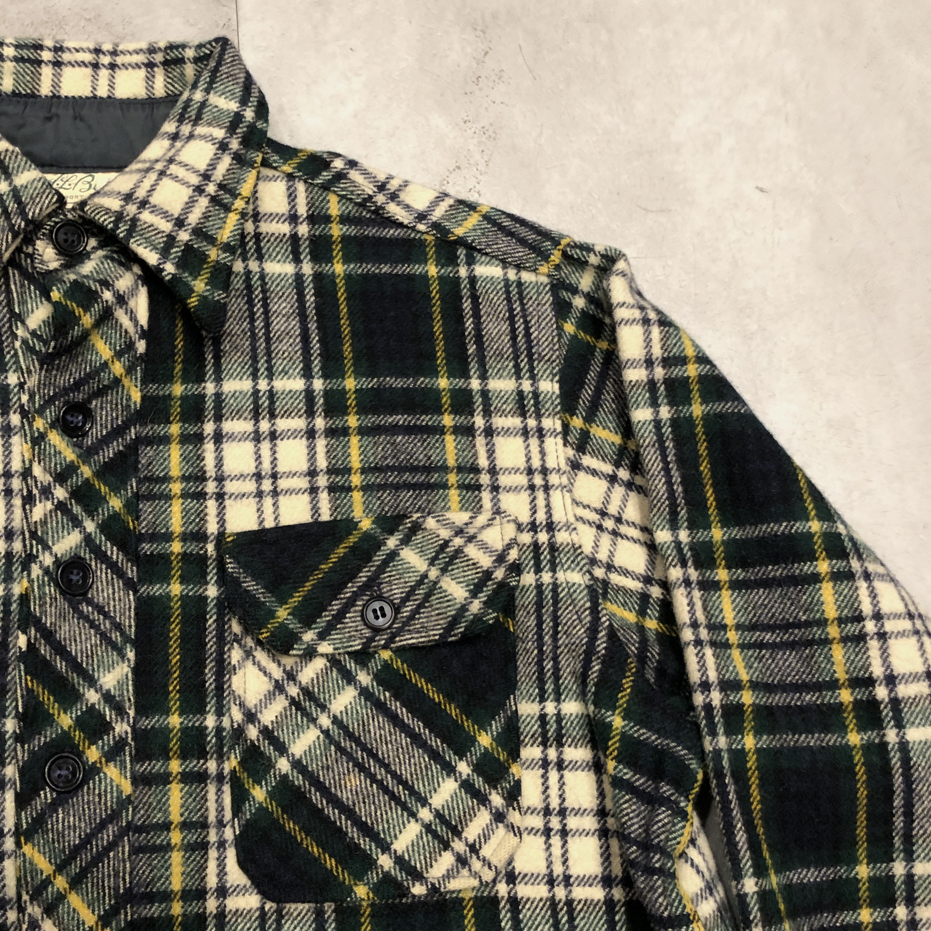 - アメリカの老舗アウトドアブランド、L.L.Beanが最も質実剛健だった1970年代に製造されたウール・プルオーバーシャツです。ホワイトカラーのベースに深いフォレストグリーンとイエローを効かせたチェック柄は、この年代のBeanならではの雰囲気を持ち、他ブランドのネルシャツには見られない独自の存在感があります。