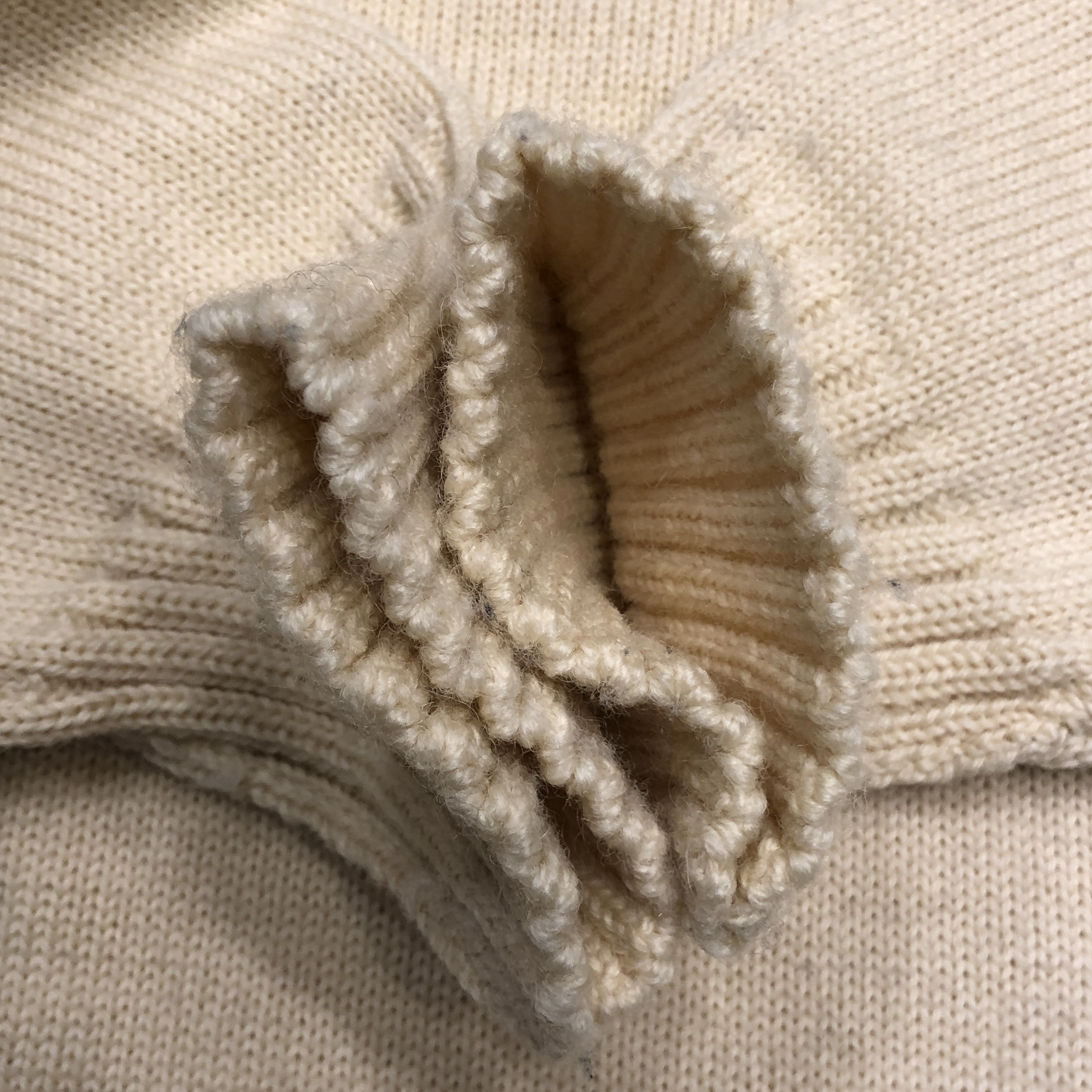 100%ピュアウールによる重厚な編み地は、まるでロープのように頼もしく、