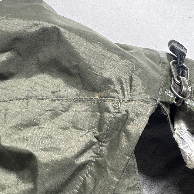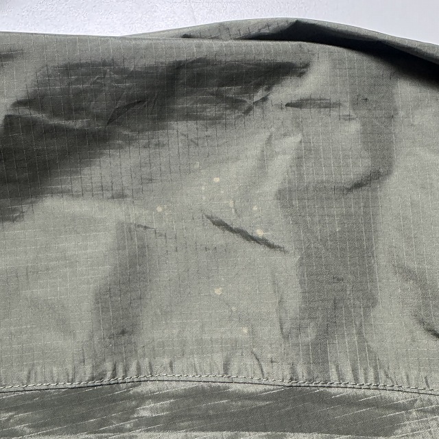 - パーツの劣化によるべたつき、劣化によるシームテープの剥がれ、ナイロン面に変色の様なシミが見られます。画像でご確認ください。その他、年代相応の着用感ございますが、ユーズド慣れされた方でしたら、まだまだ着用していただけます。