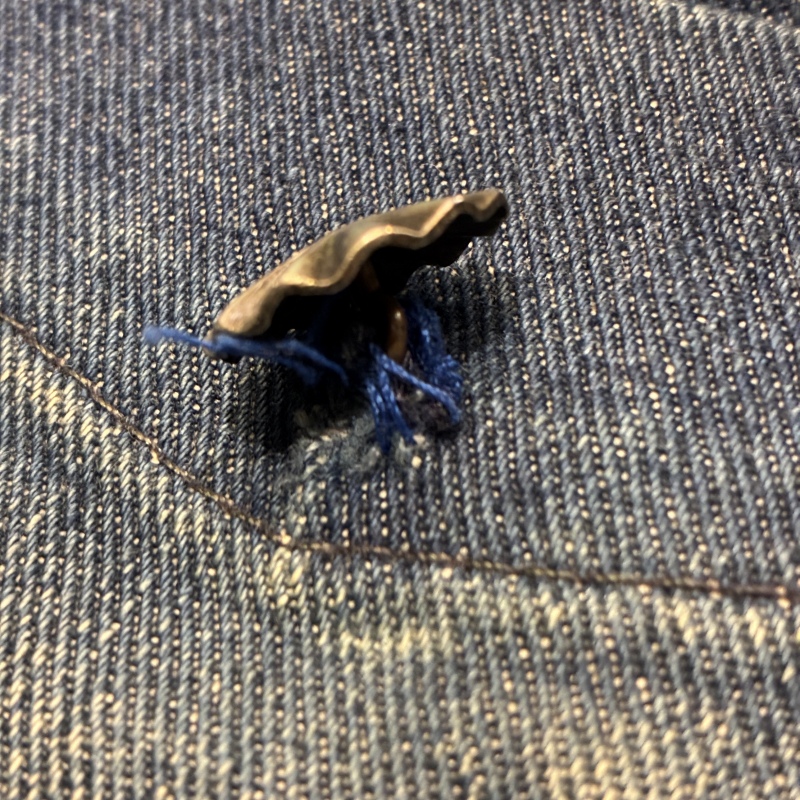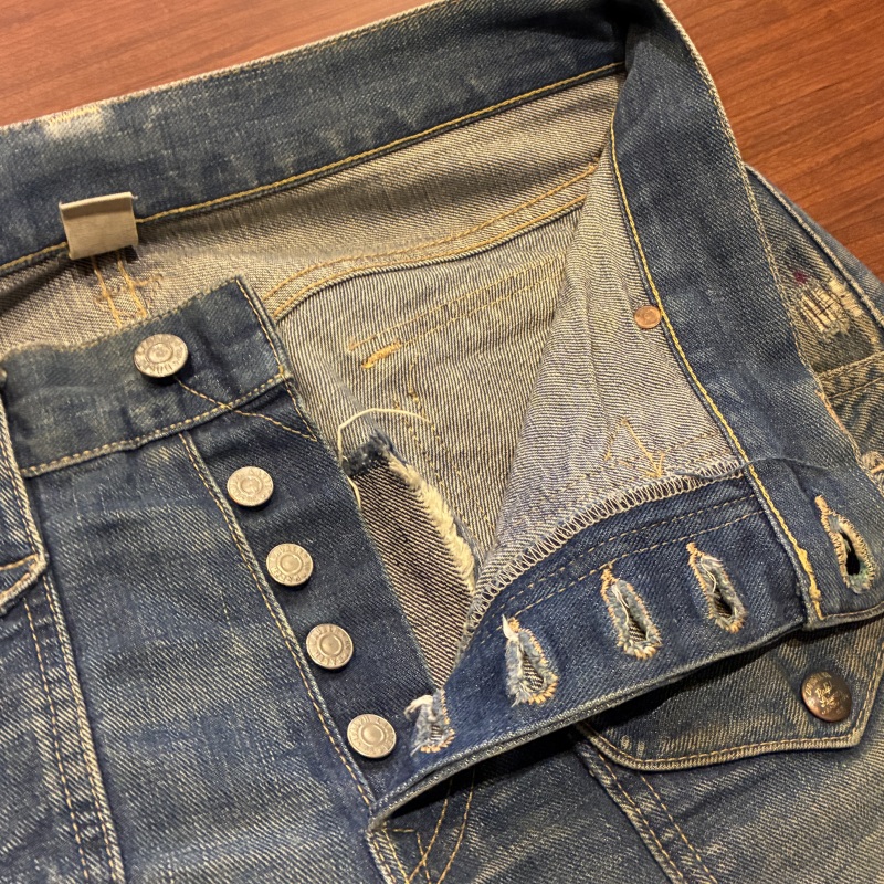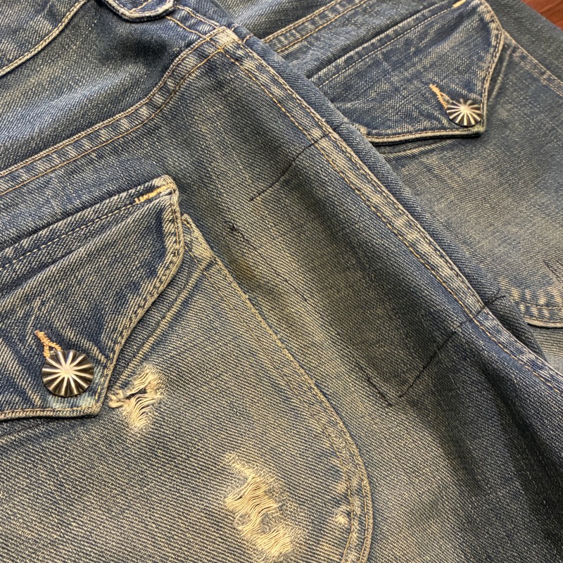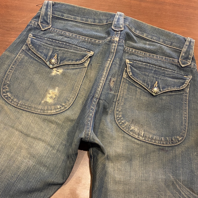 バックポケットのコンチョボタンの結び目が緩んでいたり等、多少の着用感がございますが加工箇所以外に目立つダメージ等は無く、まだまだ問題無く着用していただける状態です。
