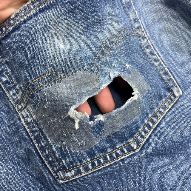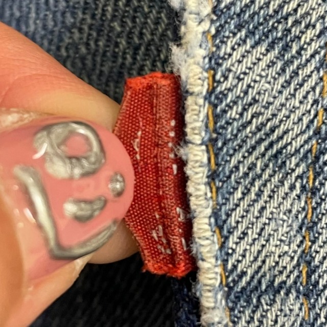 トップボタン裏刻印『6』、バックポケット裏 シングルステッチ