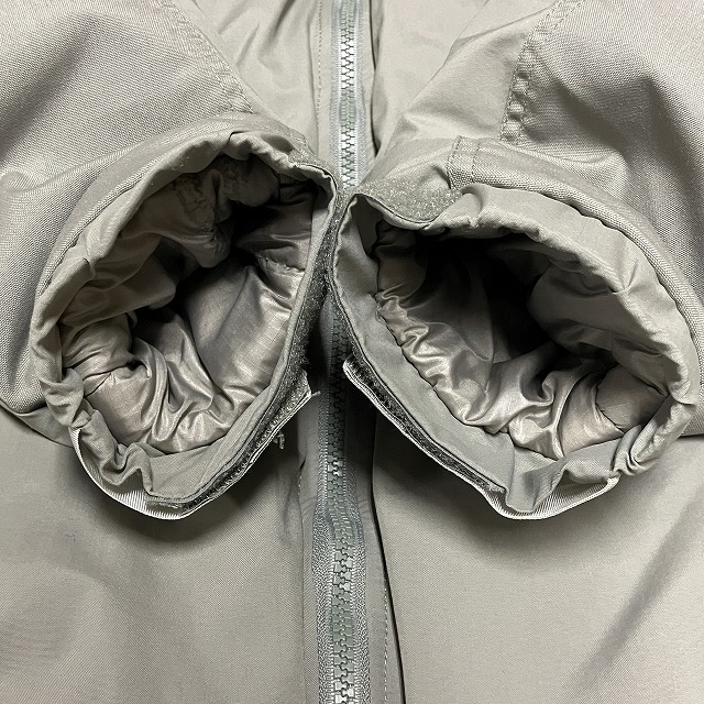 - 袖に小さなシミ、糸吊りがみられます。また、背面、右肩付近に薄っすらと変色がみられます。その他、着用感はございますが、まだまだ問題なく着用していただけます。