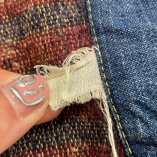 その他に、アタリ、ステッチ抜け等全体的に着用感がございますが、古着慣れされた方でしたら問題無く着用可能な状態です。