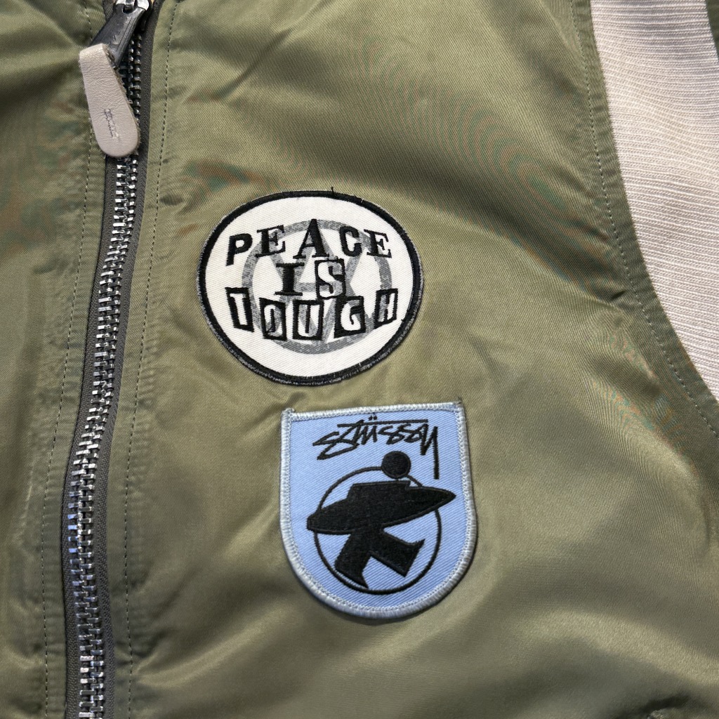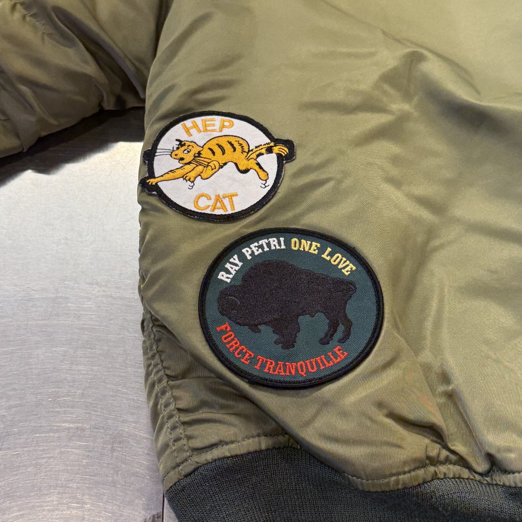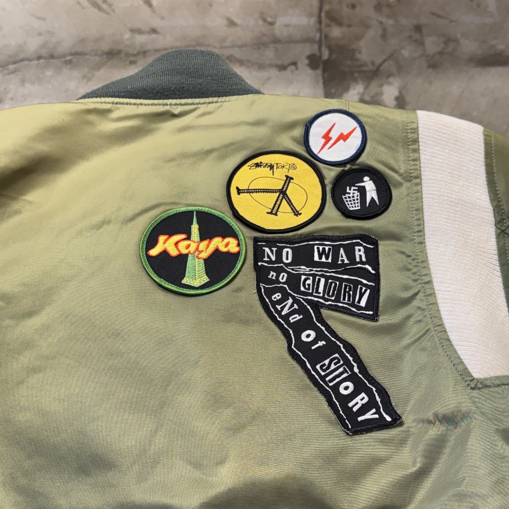 ブランド25周年記念でリリースされた“fragment design”とのコラボアイテムです。ボディにアルファ社のMA-1を採用し、多数のパッチでカスタムを施したスペシャルな一枚になります。