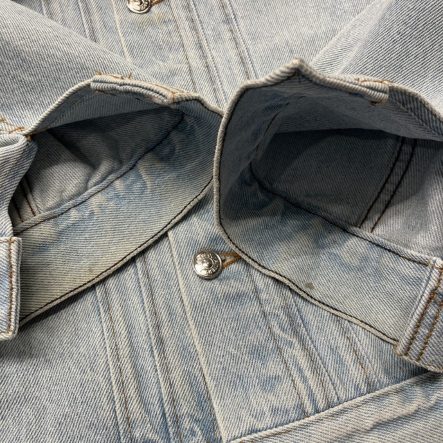 - 所々に薄っすら変色がみられます。その他、デニム特有のスレや褪せ等の年代相応の着用感ございますが、ユーズド慣れされた方でしたらまだまだ問題なく、着用していただけます。