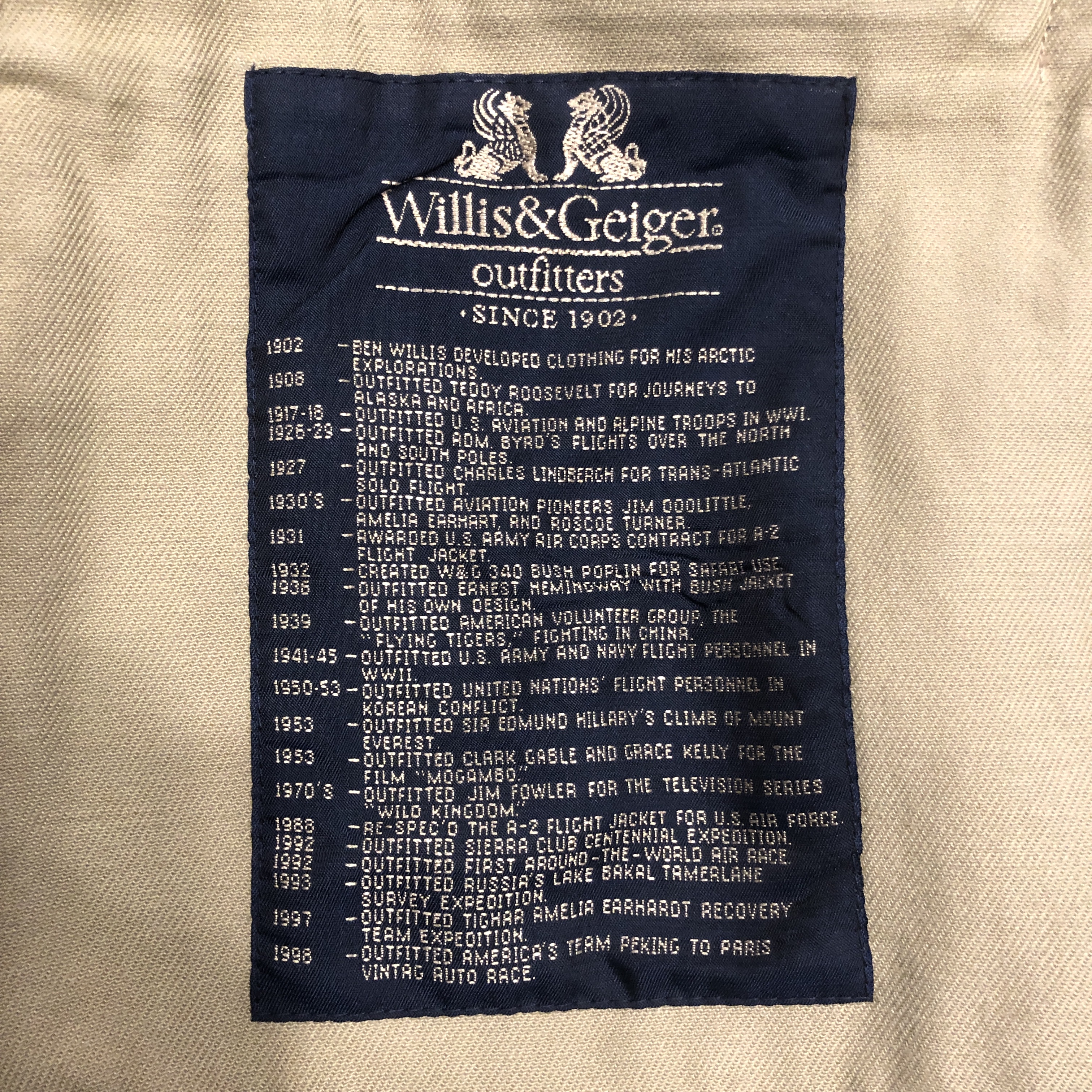 タグを見ると「Since 1902」の文字とともに、Willis & Geiger の歩んできた歴史がびっしりと刻まれています。