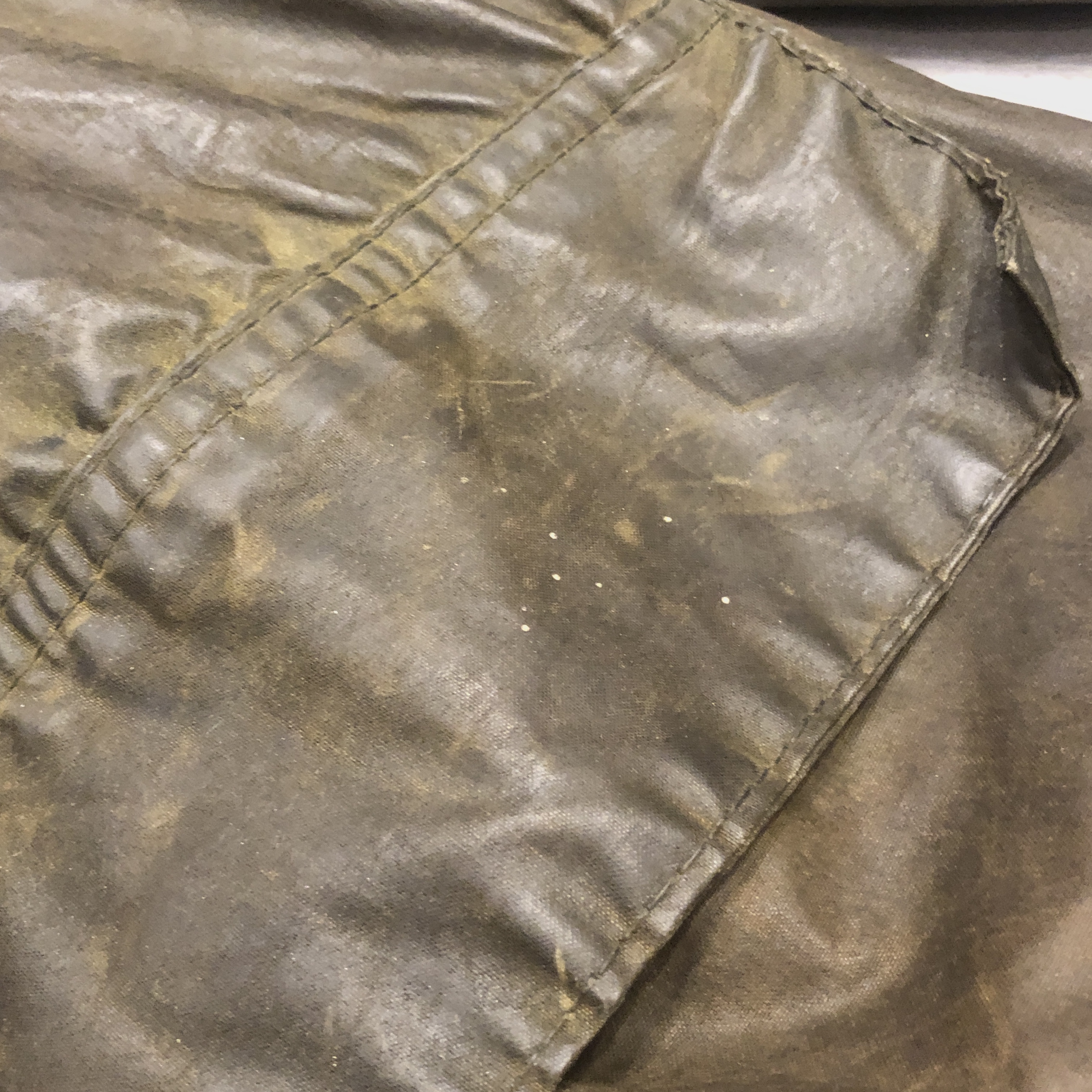 オリーブカラーは均一ではなく、時間と動きに応じて生まれた濃淡が重なり合い、まさに“育ったBarbour”という佇まいです。
