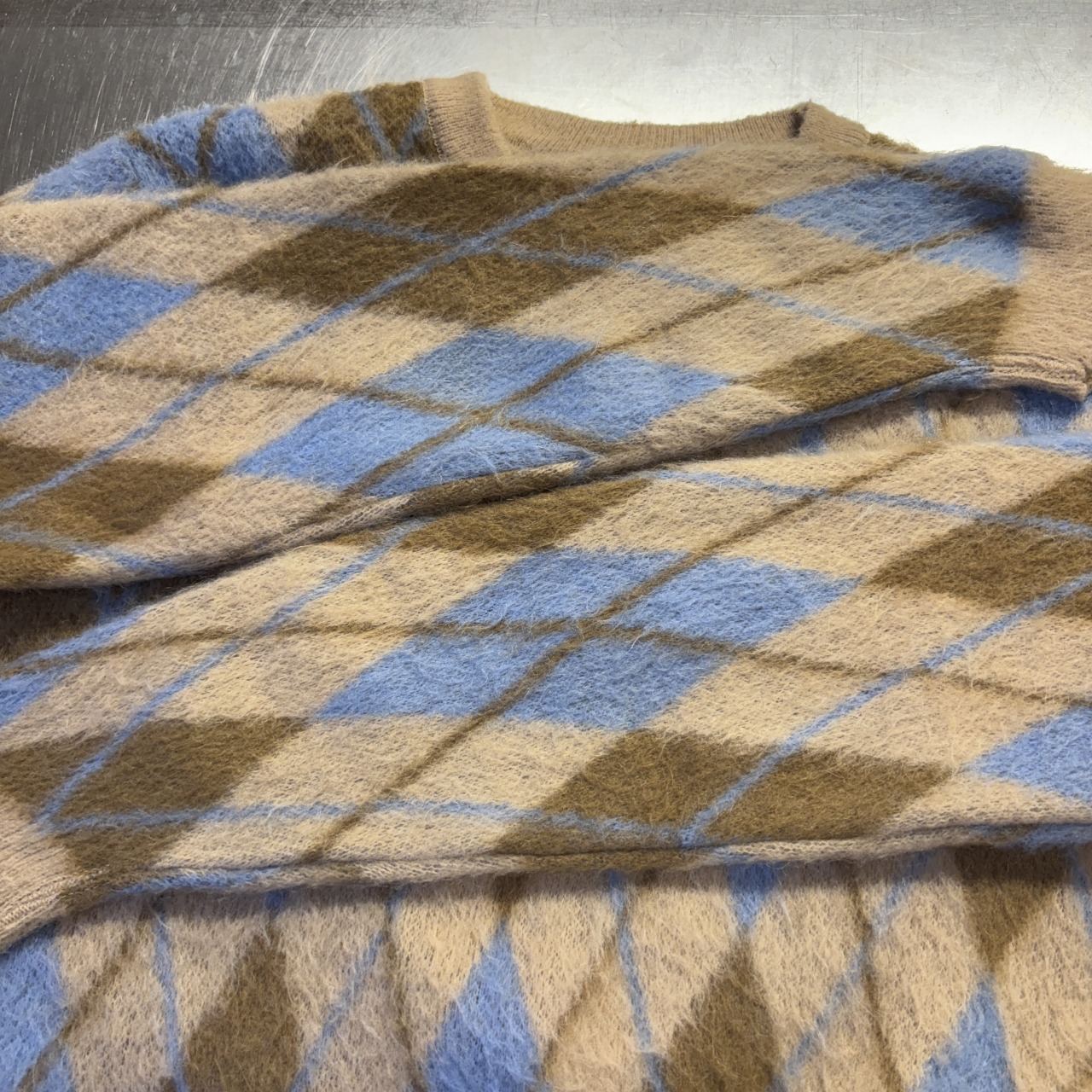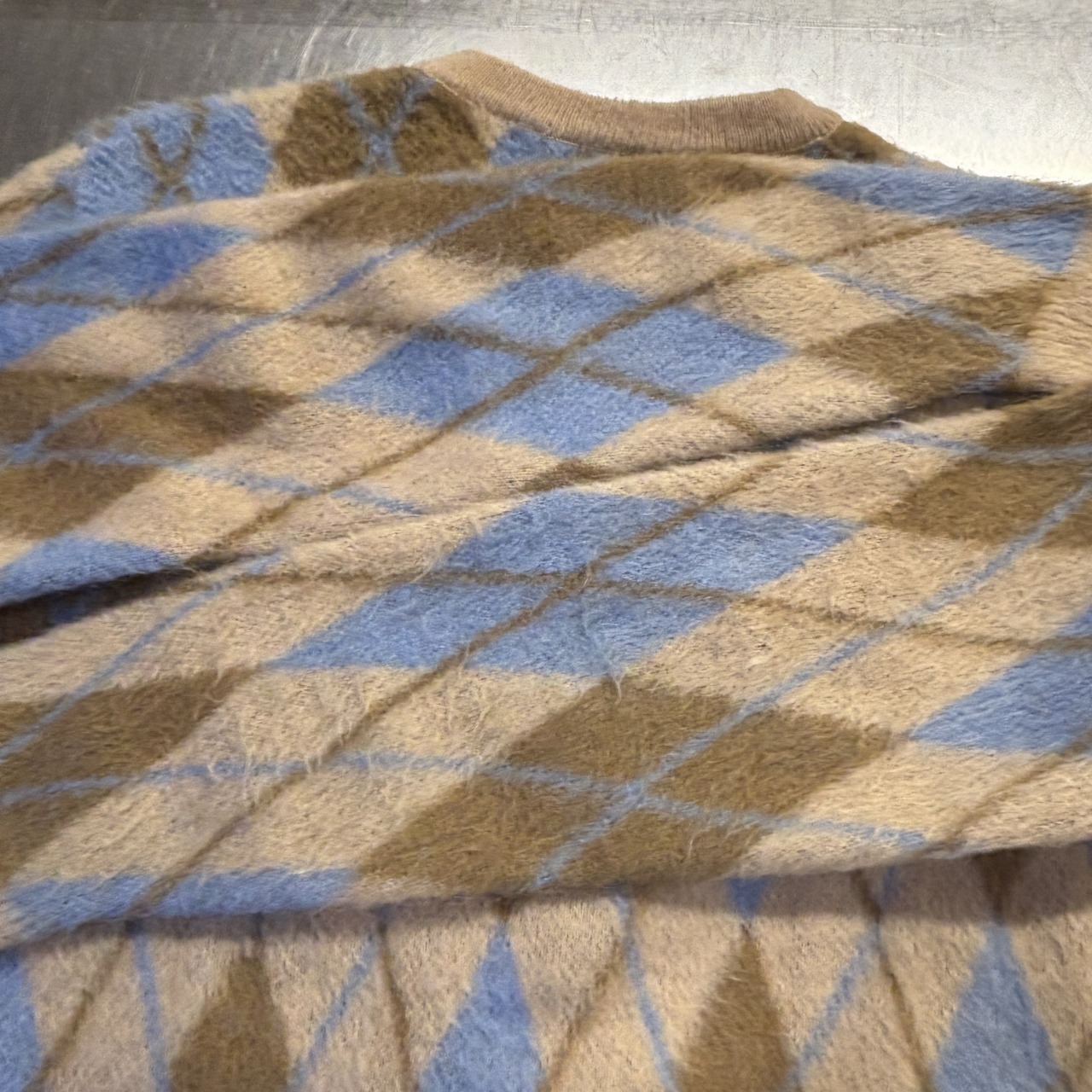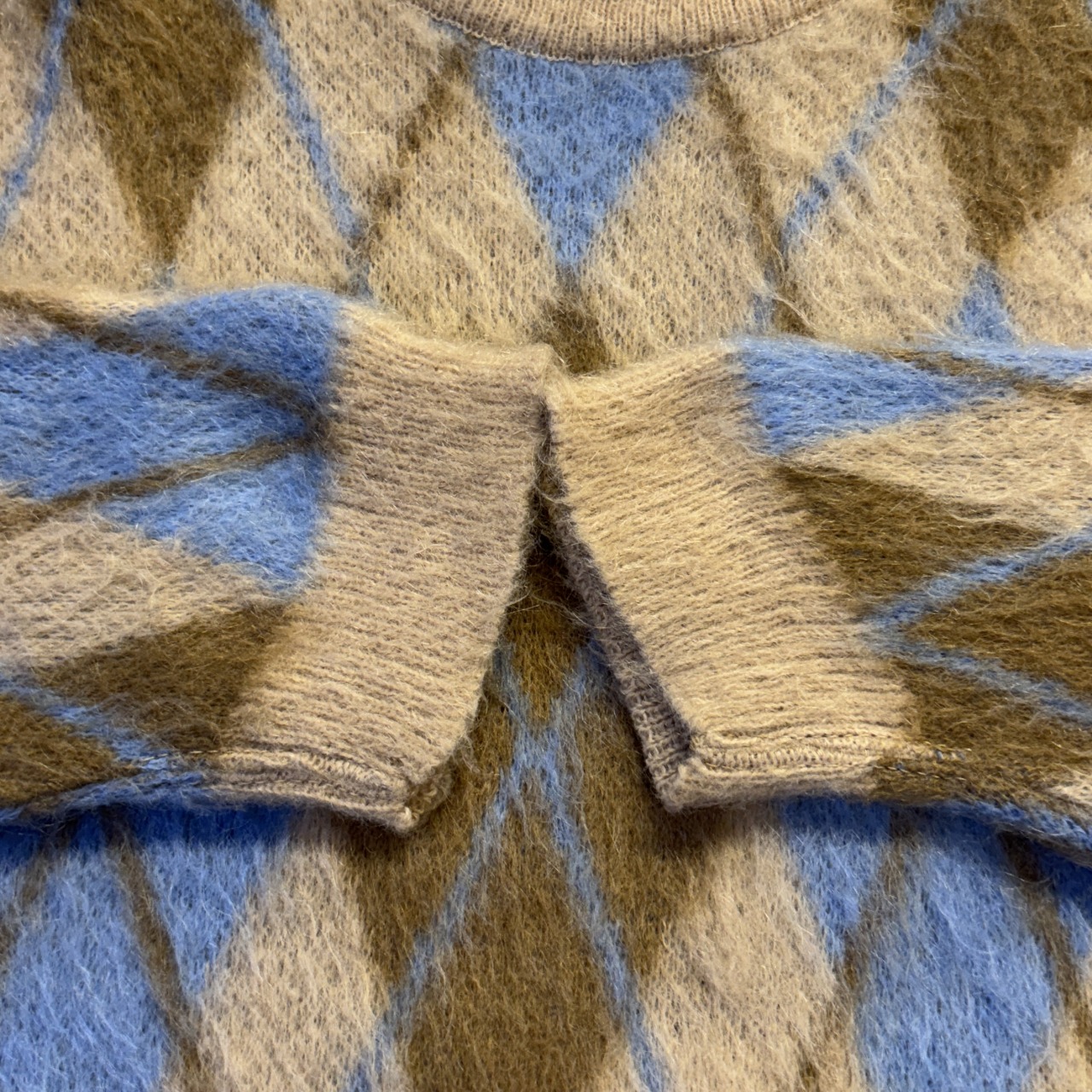 「毛足、アーガイル柄、SIZE M」