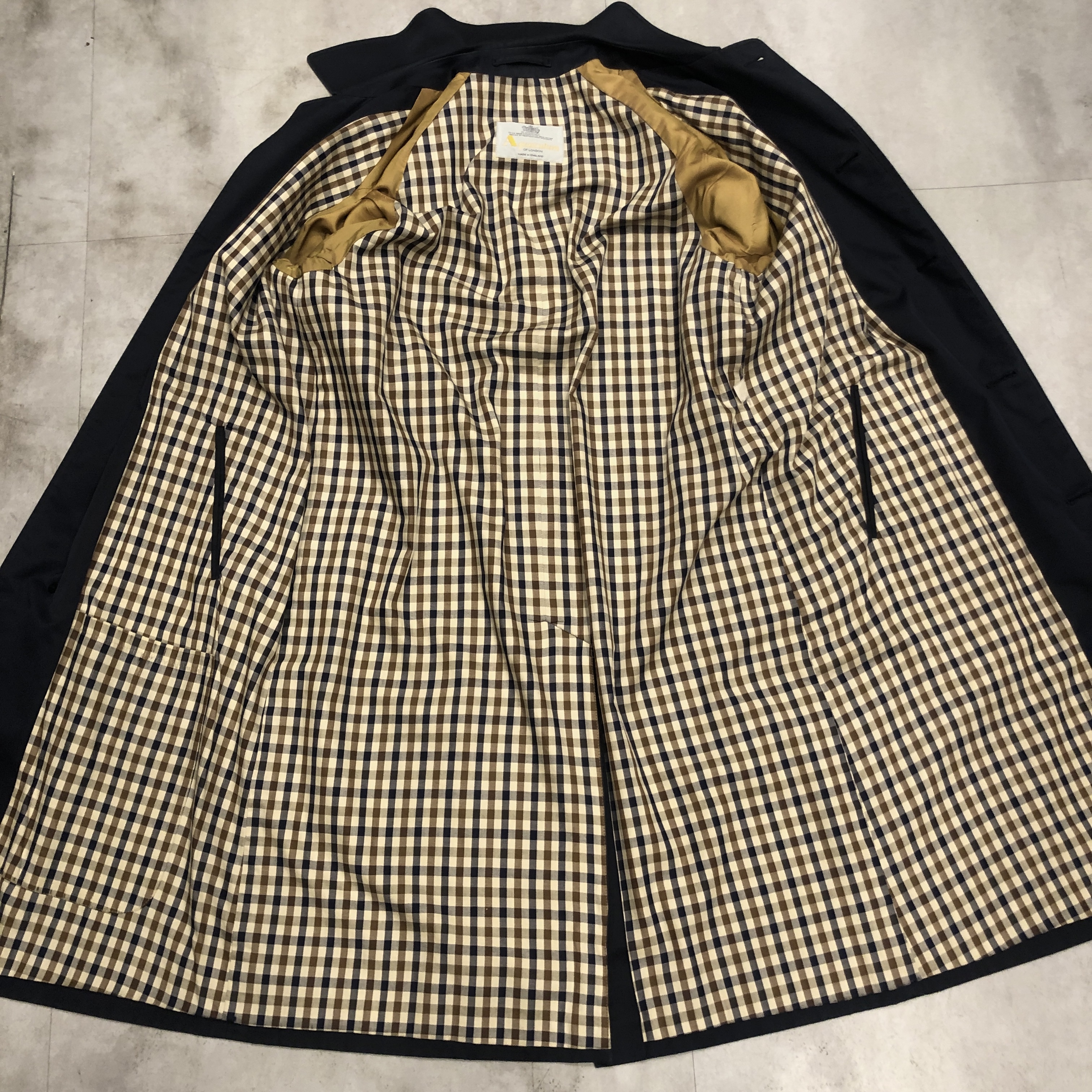- 英国クラシックの真骨頂。Aquascutumによる、バルマカーンコートのご紹介です。オーセンティックなラグランスリーブに、比翼仕立てのミニマルな面構え、まさに往年のブリティッシュ・テーラリングが息づいています。たっぷりとしたAラインに流れるようなドレープが美しく、まとうだけで空気感が変わるような一着です。まさに「育てる」ために手にしたい逸品。