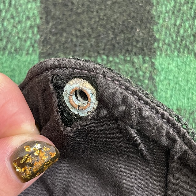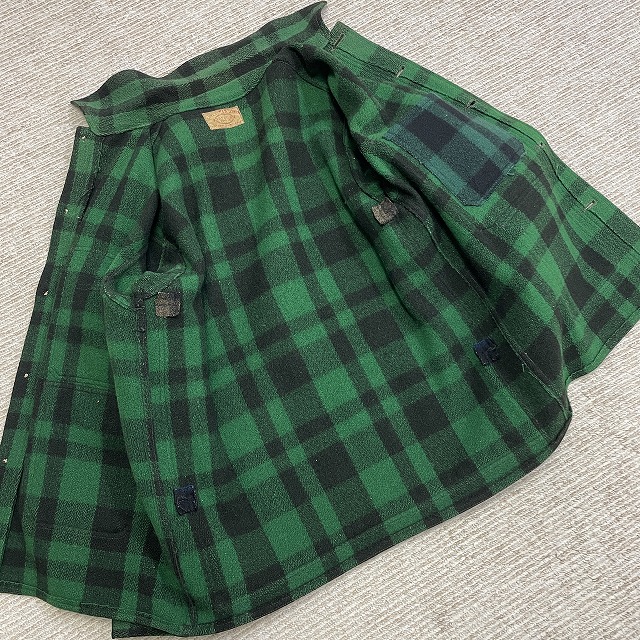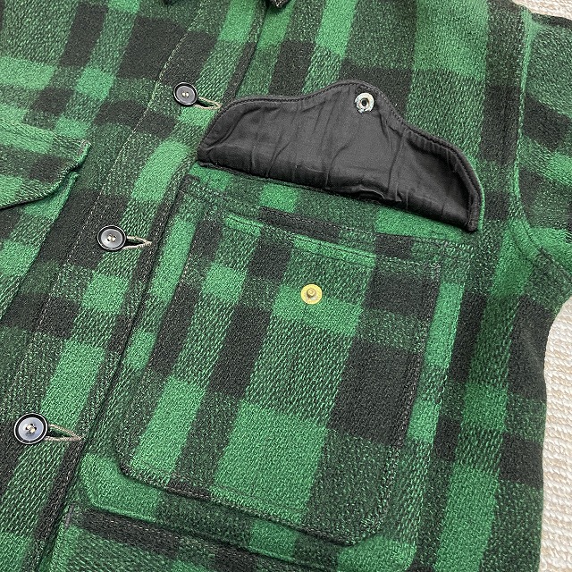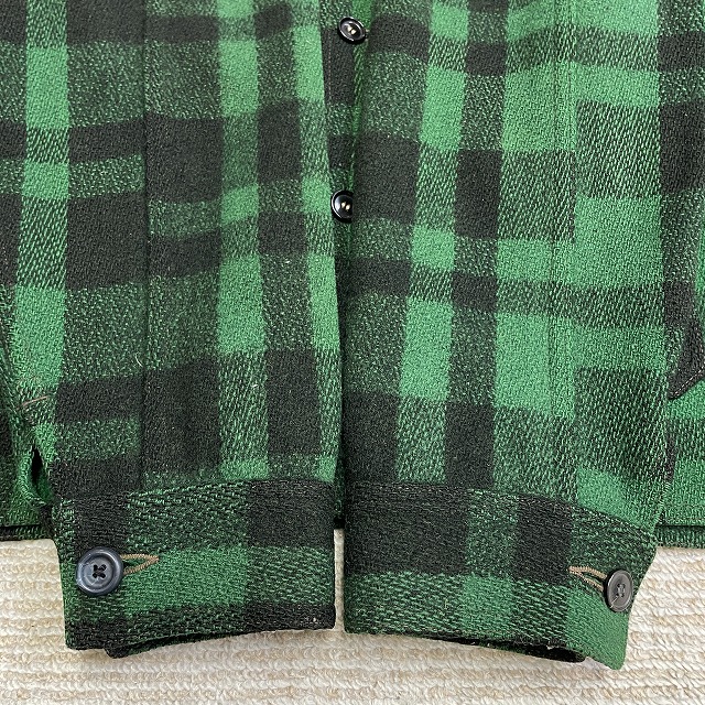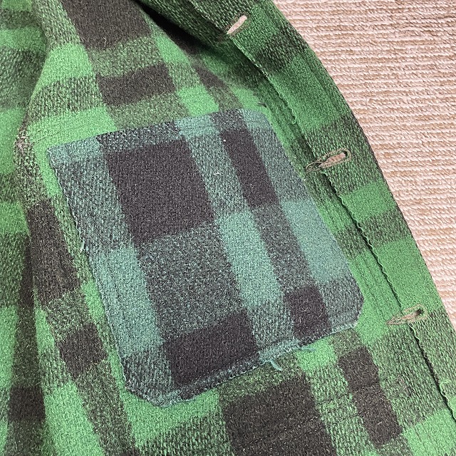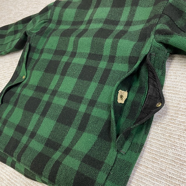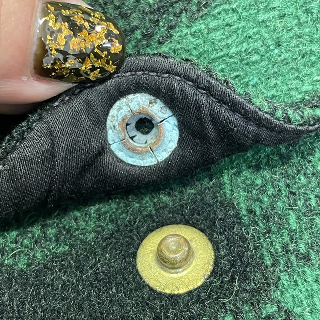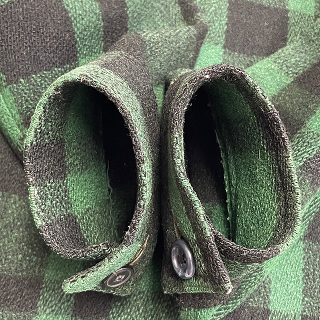 「UNION MADEタグ、旧スナップボタン、グリーン×ブラックチェック」