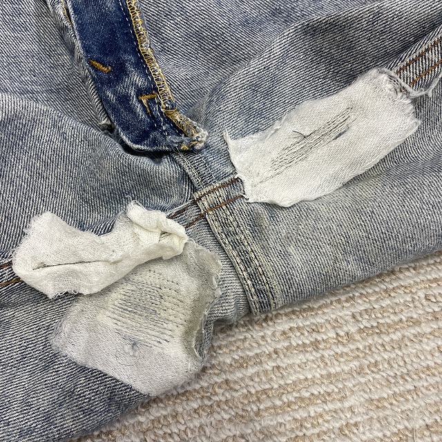 - 画像のように、擦れ、アタリ、薄汚れ、キズがあり、股にリペアがございますが、