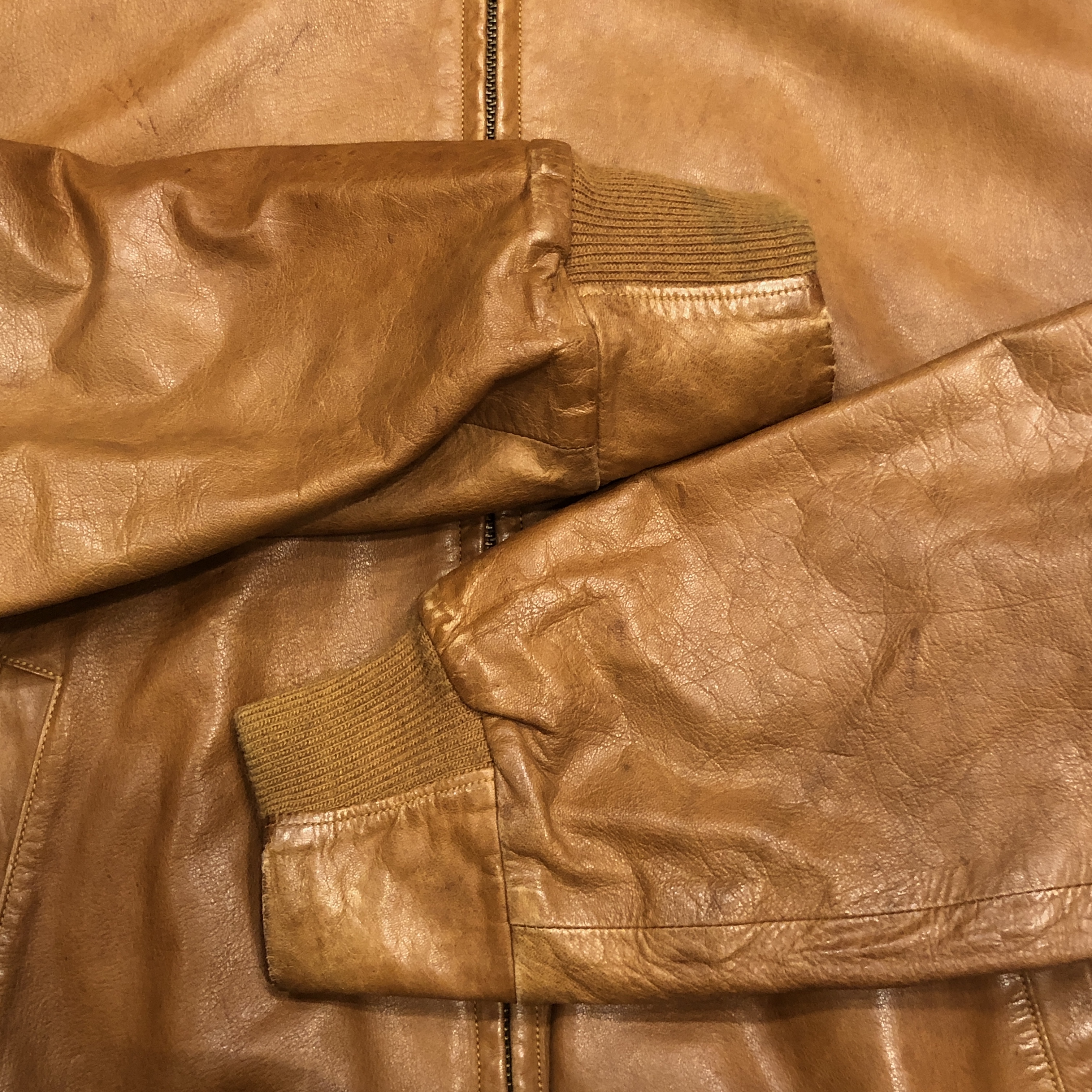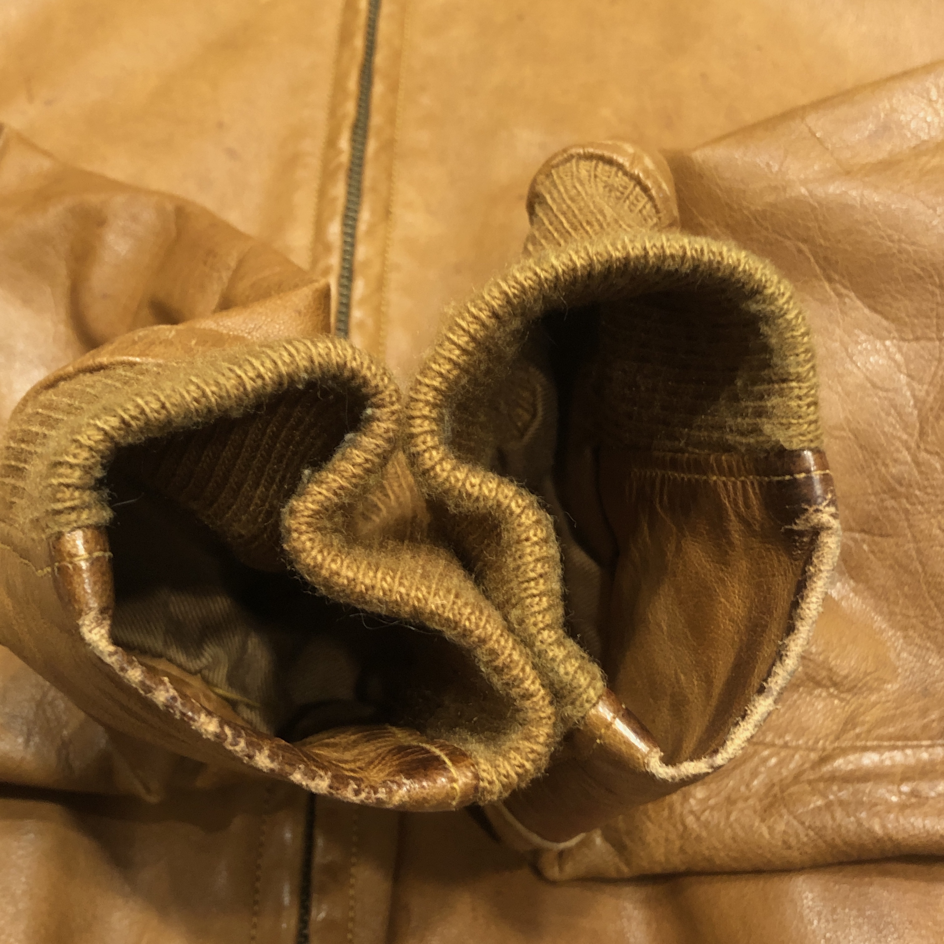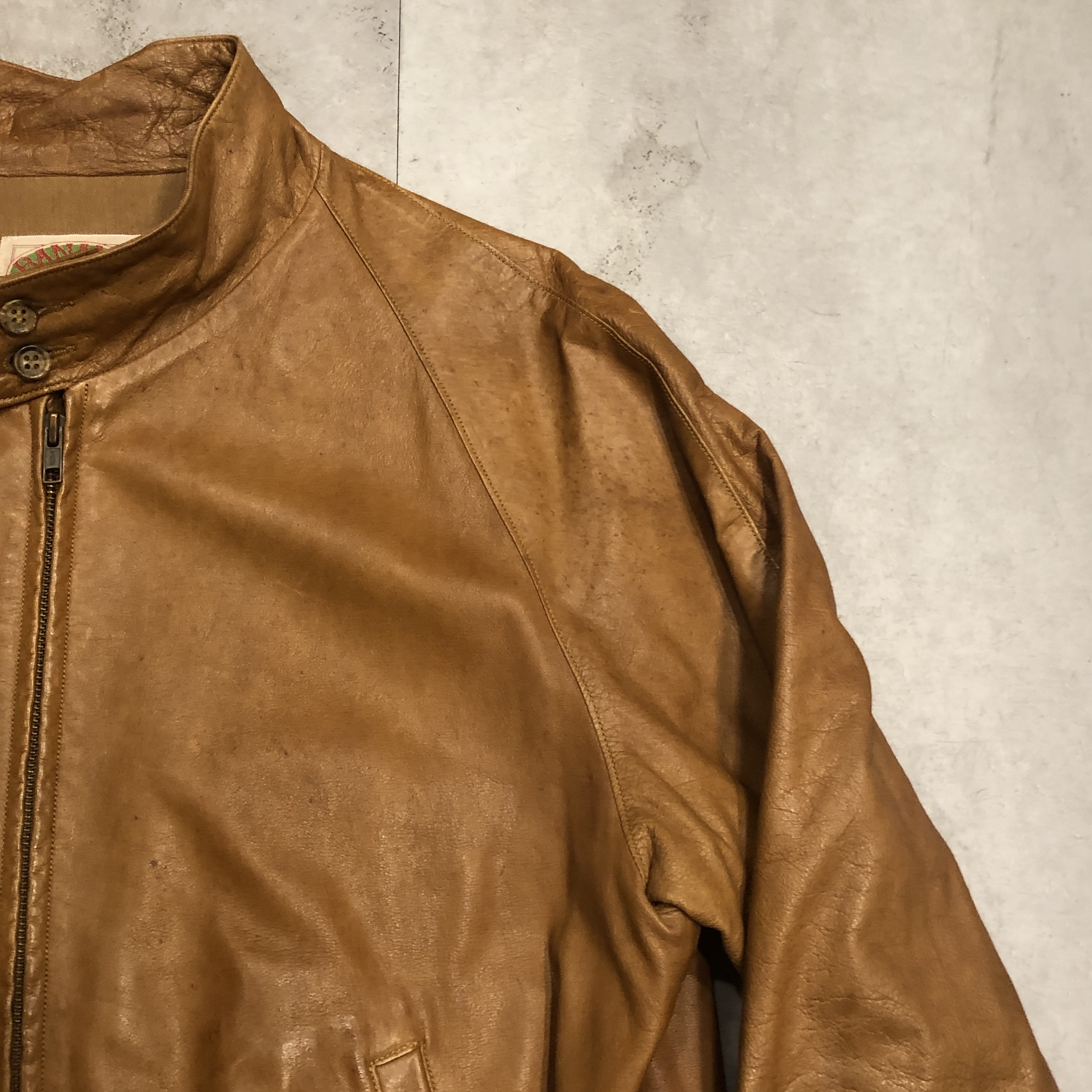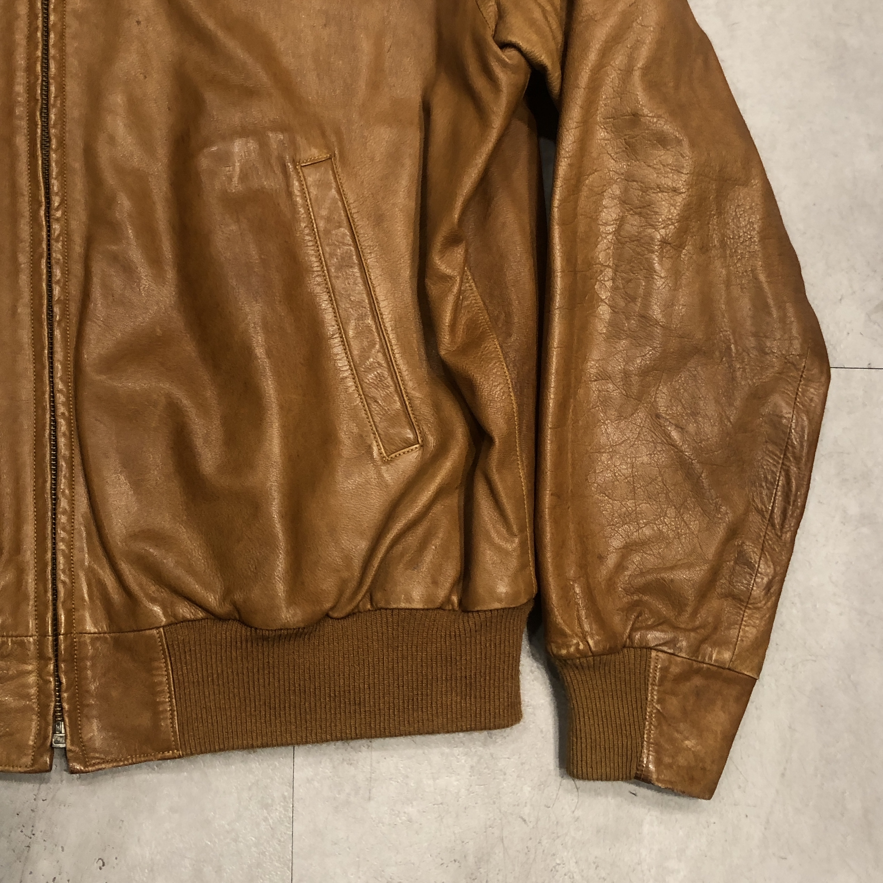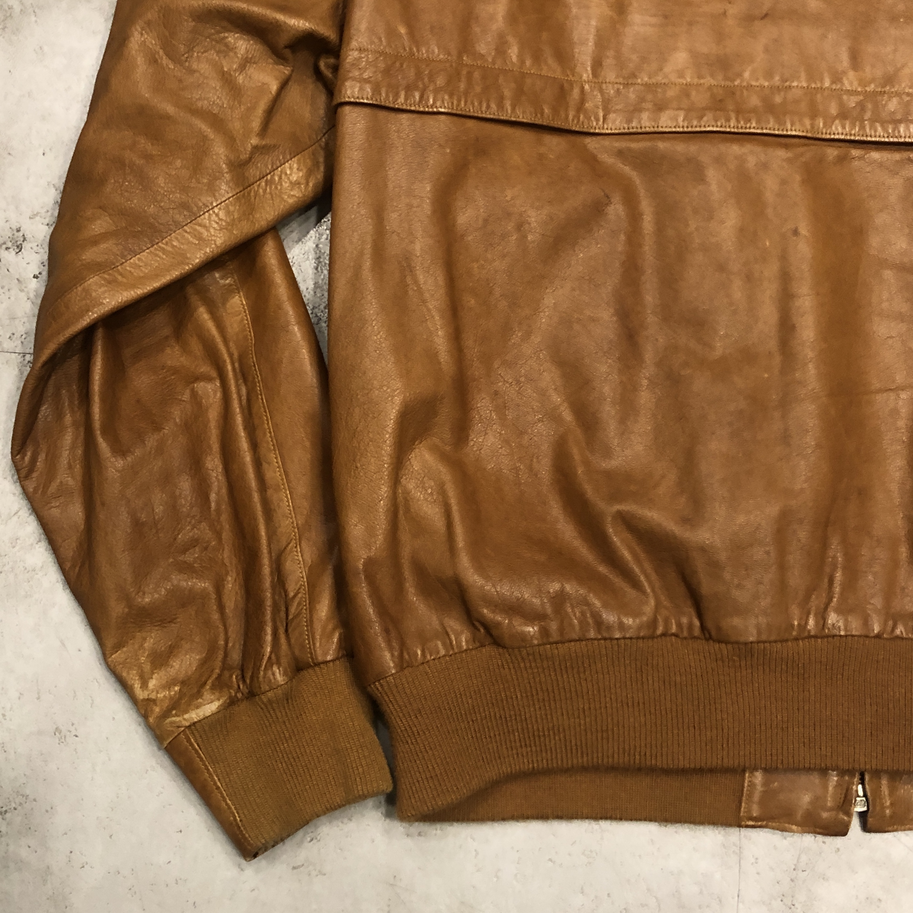 - 年代相応の着用感、レザー部分のスレ、アタリ、シミ等が画像の様にございますが、ヴィンテージ慣れされた方でしたら問題なく着用していただける範囲です。