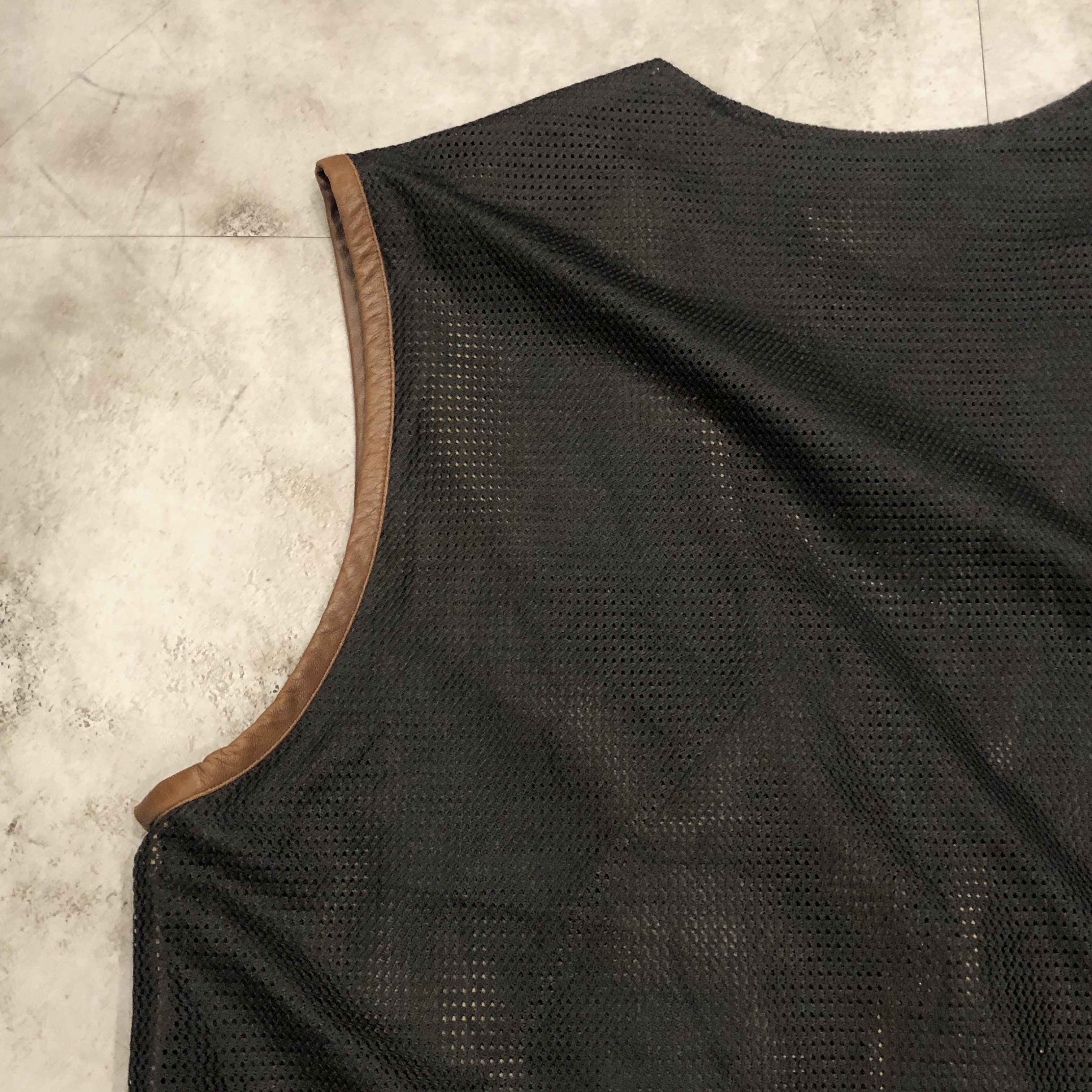 まず目を惹くのは、前身頃に配されたレザーキルティング。
