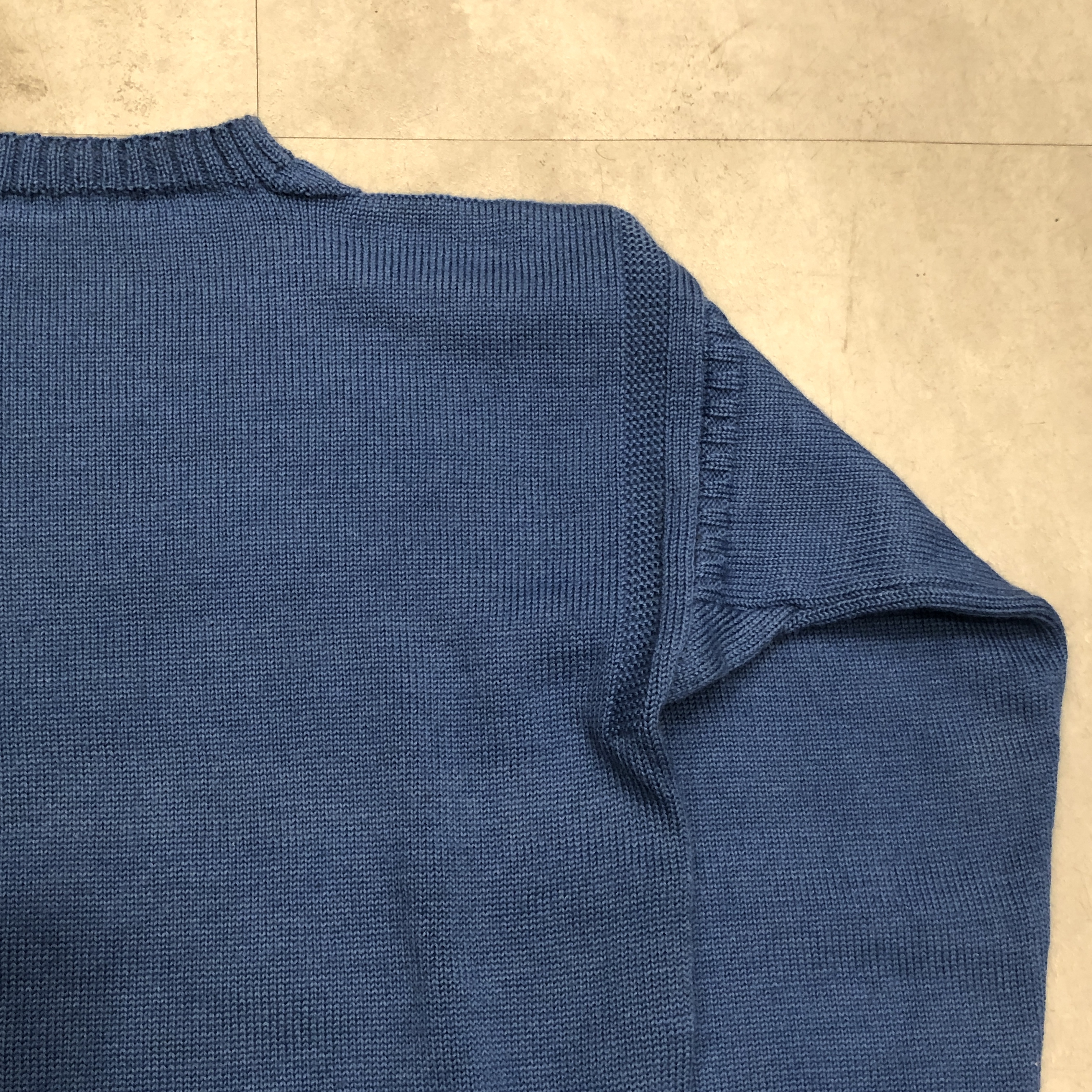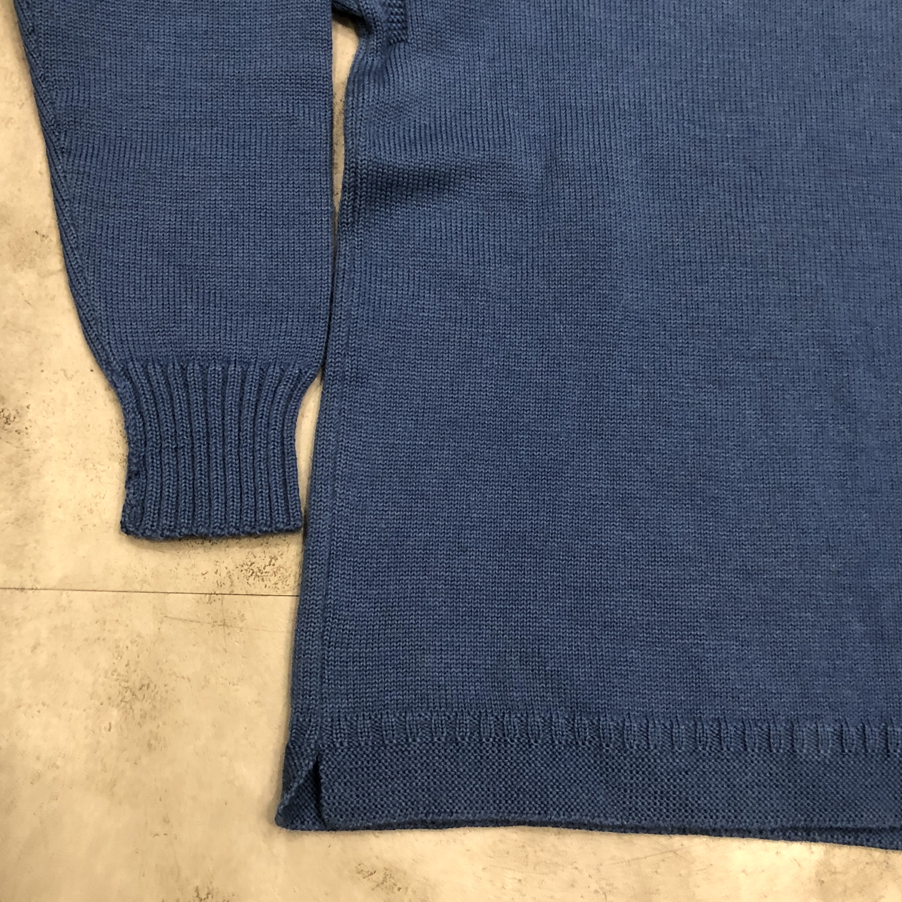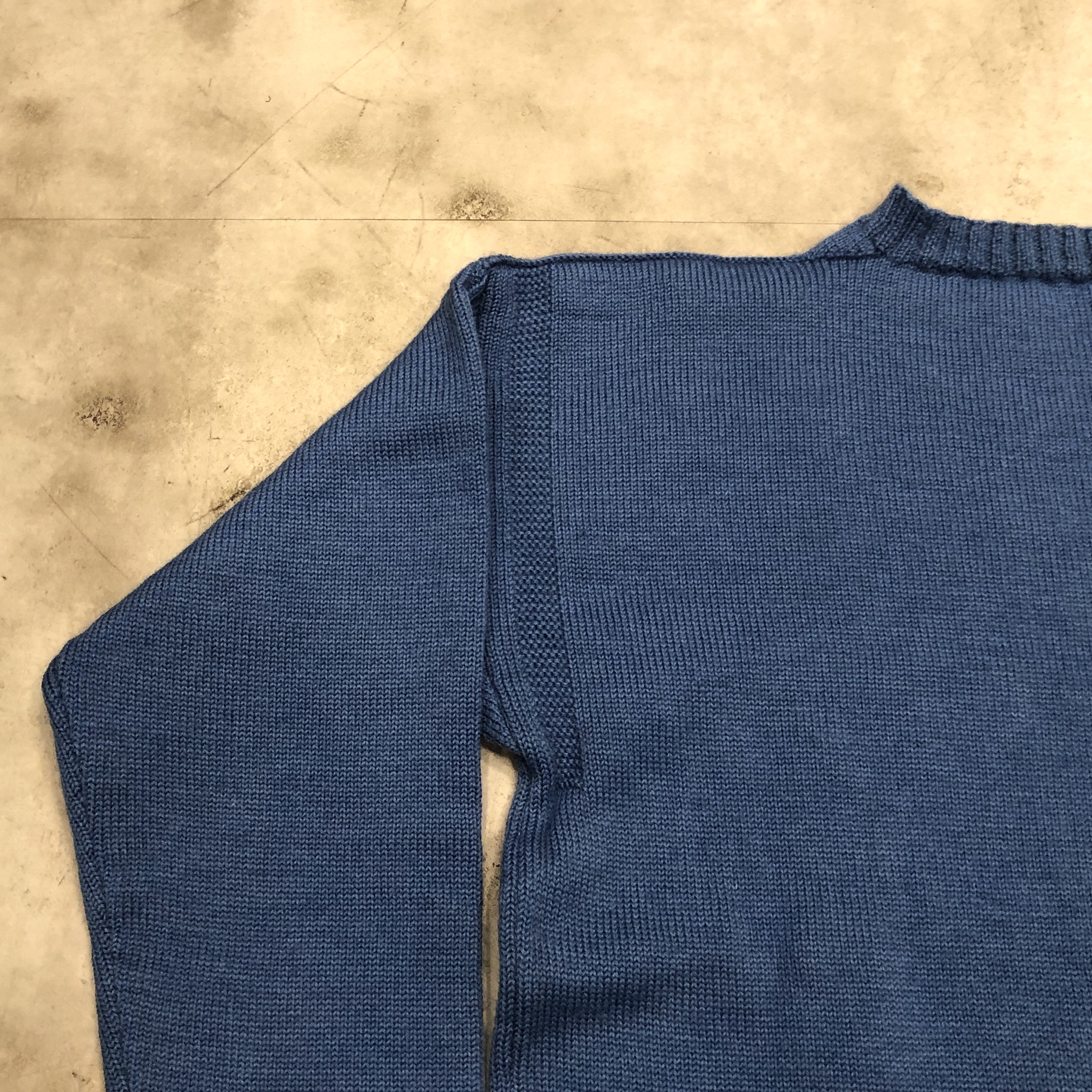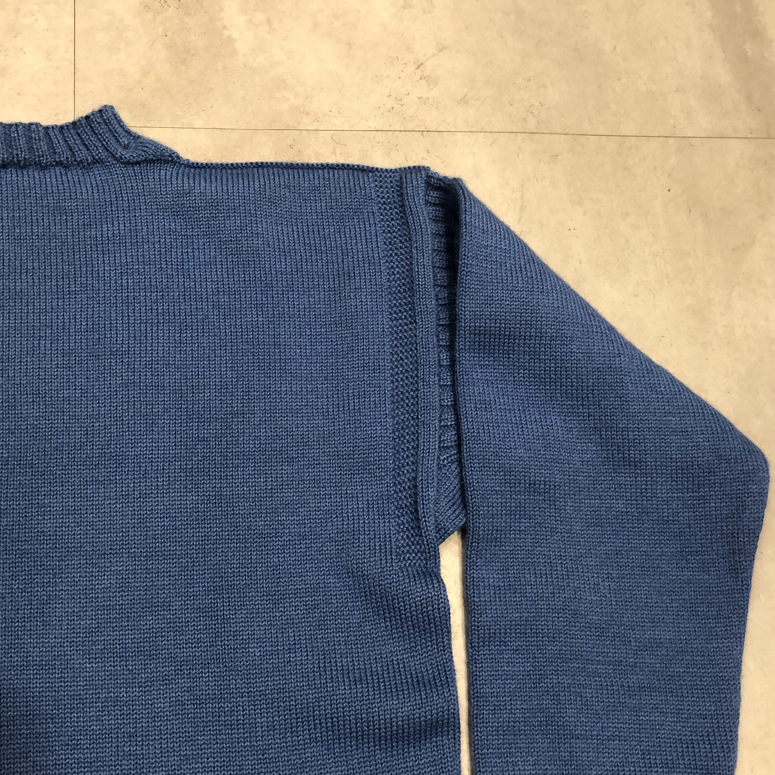 サイズ - 実寸 身幅 53cm 裄丈 84cm 着丈 70cm ※若干の誤差はご容赦下さい。 状態 多少の着用感はございますが、古着慣れされている方でしたら問題なくお使いいただける範囲です。 ※弊社の取扱商品は基本的には中古品の為、写真に写しきれない細かな汚れや、細かな擦れやアタリ等は全てを記載しきれない場合がございます。また撮影環境により、実際の色味に若干の誤差が生じる場合がございます。±2.5cm以内の採寸誤差、イメージの相違や細かなダメージの有無等による返品、返金、交換等は一切承れませんのでご了承下さい。ヴィンテージ、古着にご理解のある方のみご購入ください。 商品詳細 英国チャネル諸島・ガーンジーに伝わる伝統漁師ニットの原型を、いまもなお忠実に守り続ける老舗 LE TRICOTEUR(ル・トリコトゥール)。 クラシックなガーンジーセーター最大の魅力は、無駄を削ぎ落とした機能美だけで成立するミニマルなデザイン。海での過酷な労働に耐えるために生まれた、目の詰まったピュアウールの編み地は、防風性・保温性ともにずば抜けており、現代のアウトドアウェアとは異なる“天然素材だけで完結する完成度”が感じられます。 ぜひ、この機会にお迎えください。