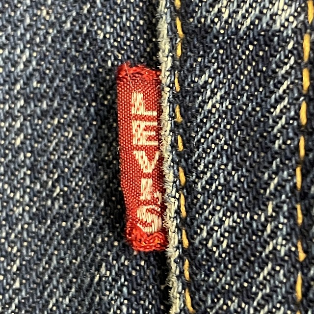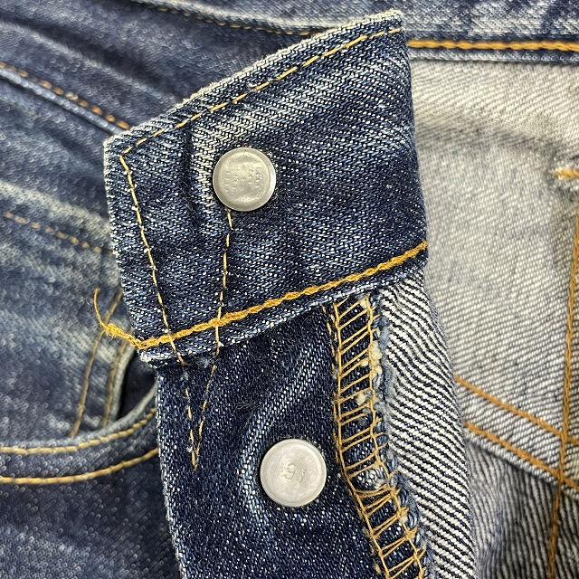 トップボタン裏刻印『ツブツブ』、不均等V、Vステッチ、ウェストシングル、ズレカン、足長R