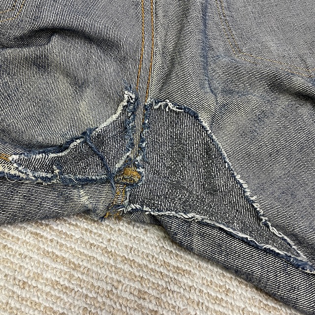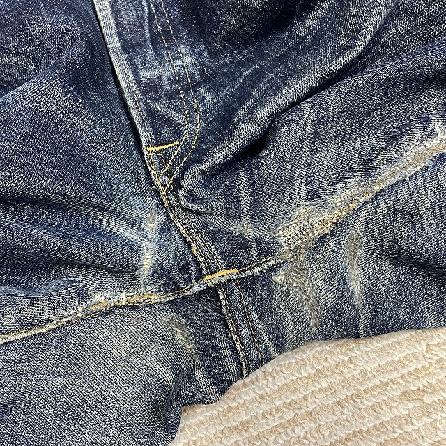 - 画像のように、スレ、アタリ、小傷があり、股にリペアがございます。