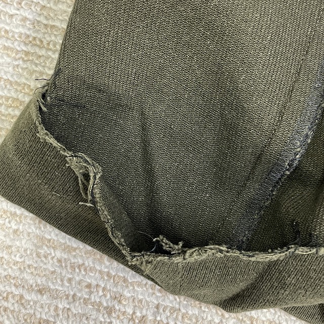 - 画像のように、汚れ、擦れ、ヤケのような色ムラがあり、裾の縫製部分にホツレがございます。
