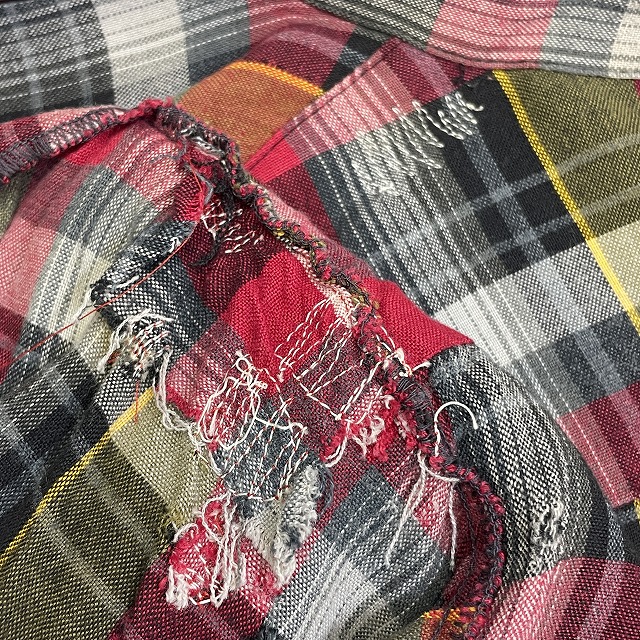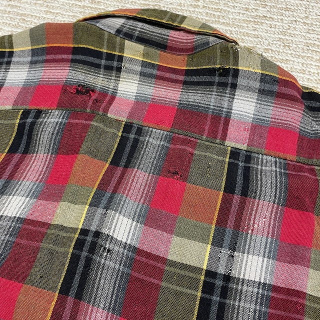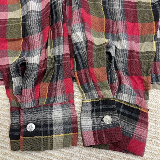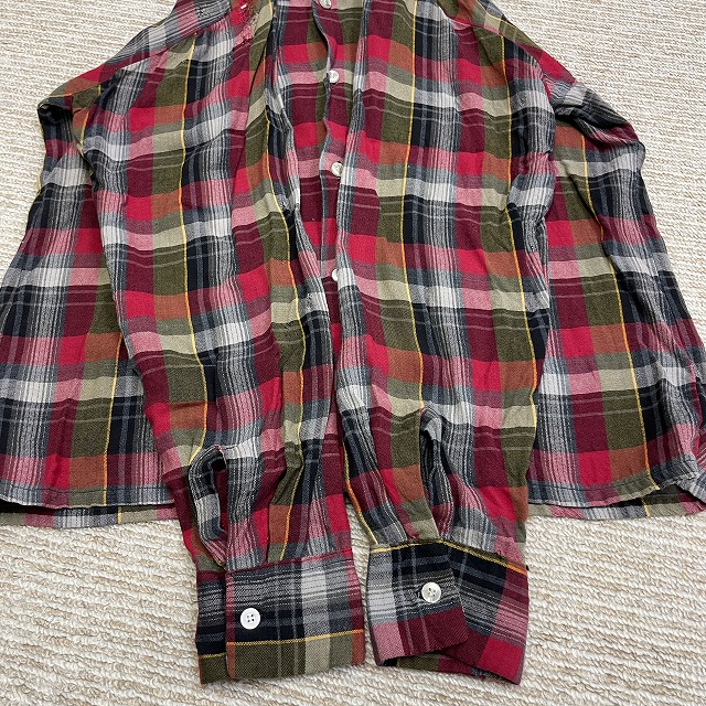レッド×ブラック×グレーなど多色のチェックレーヨンシャツ。