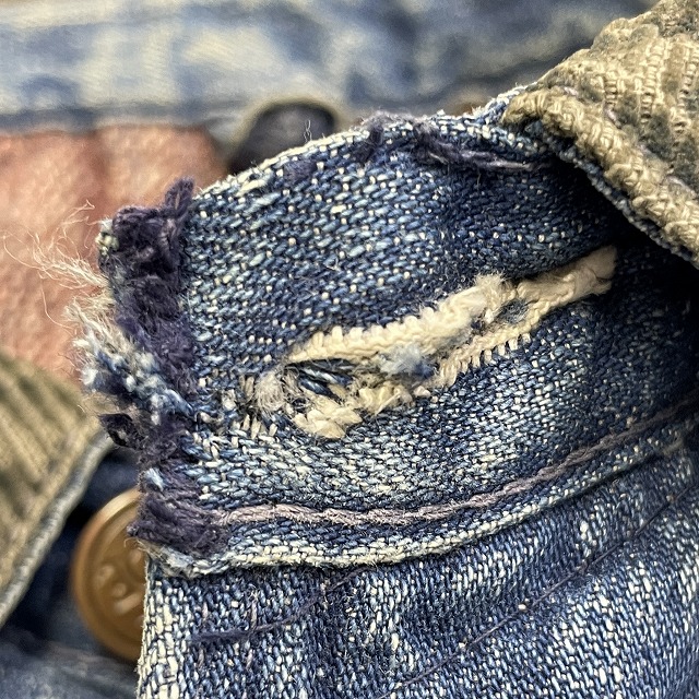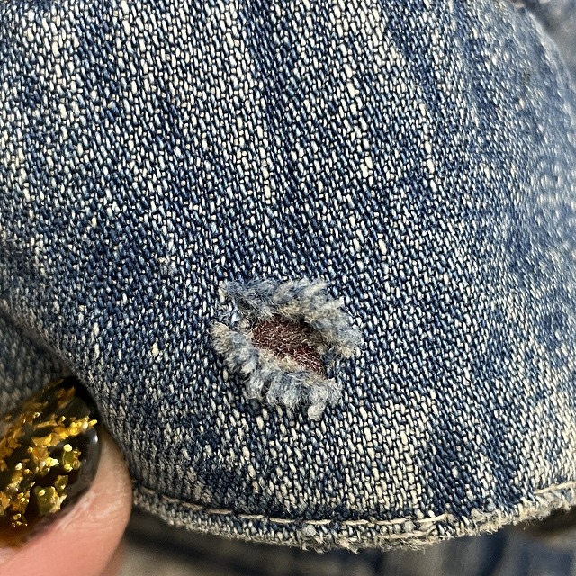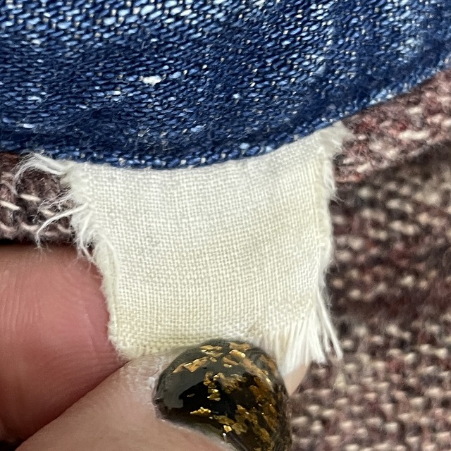 第1ボタンホールに手縫いで簡易的なお直しがございます。