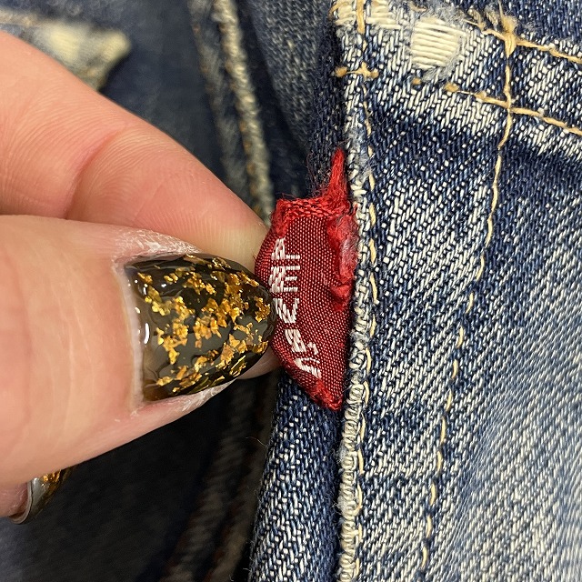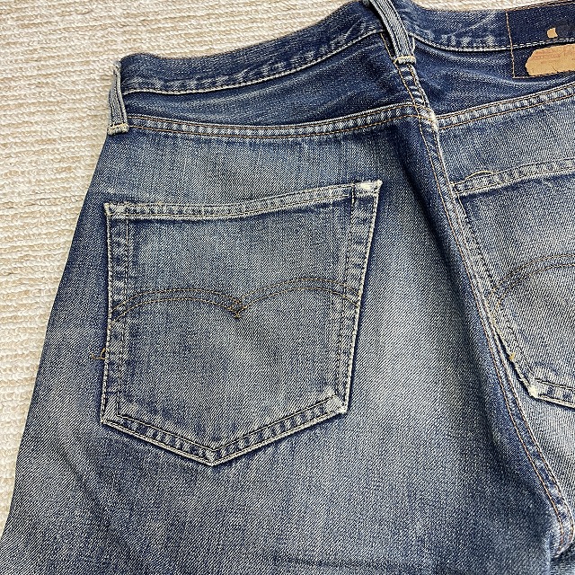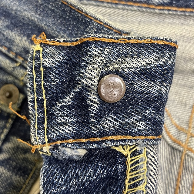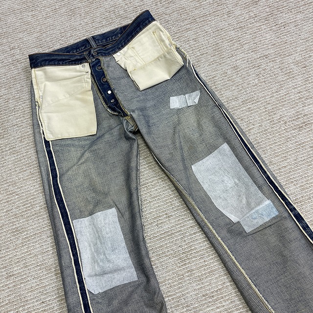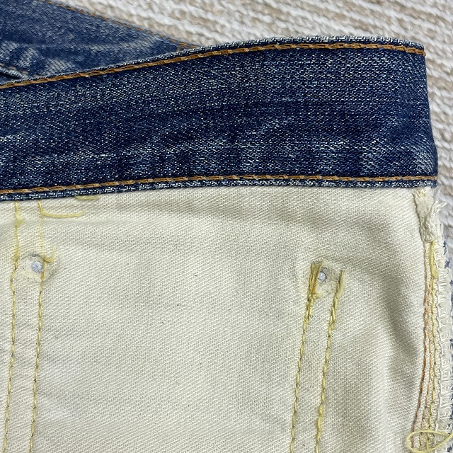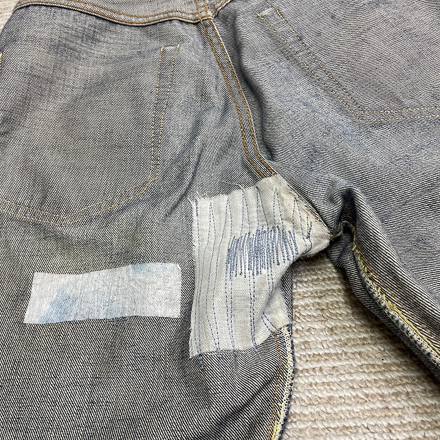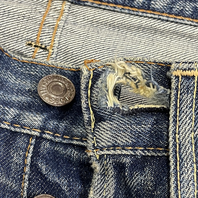 ポケット裏側のリベット受けが数か所欠損しており、パッチが接着剤で貼られております。