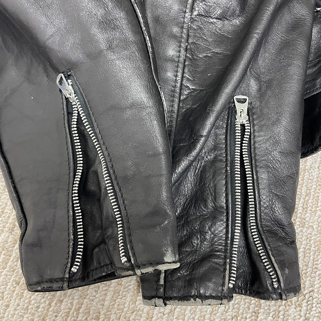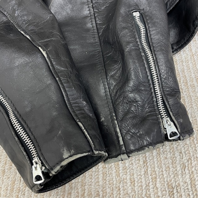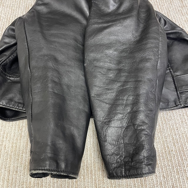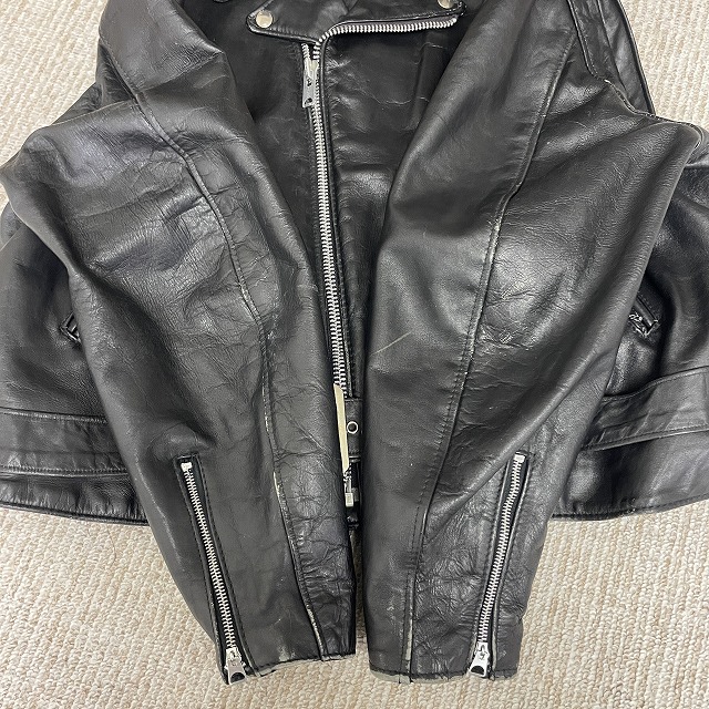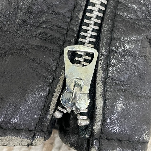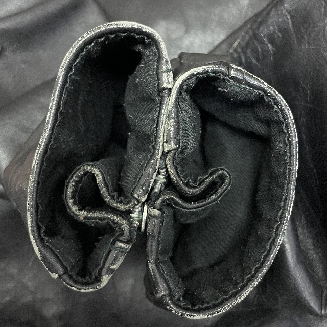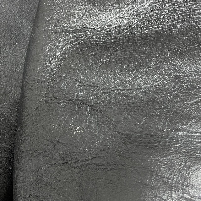 - 画像のように、レザー部分にスレ、キズがあり、裏地にステッチ抜けがございます。