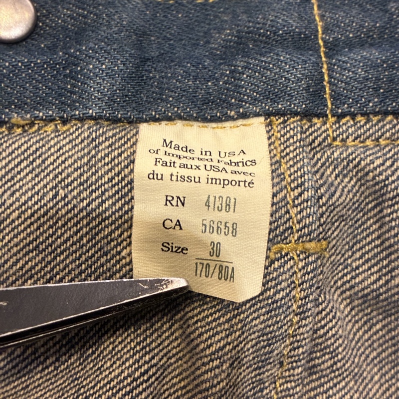 - アタリや擦れ、色落ち等の着用感がございますが目立つダメージ等は無く、古着慣れされた方でしたらまだまだ問題無く着用していただける状態です。