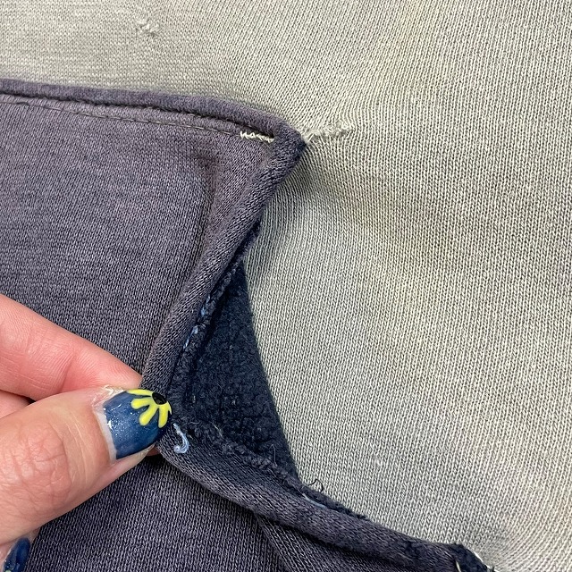 「後付けパーカー、ツートン、ドラポケ、グレー×ネイビー」