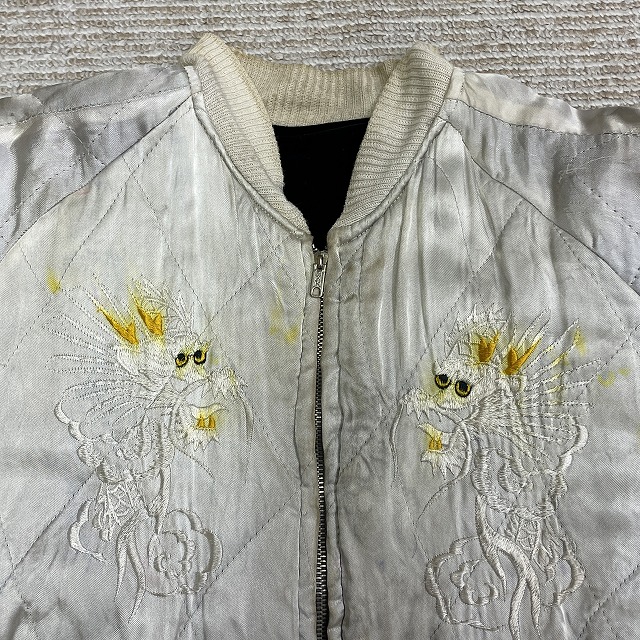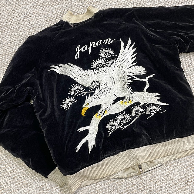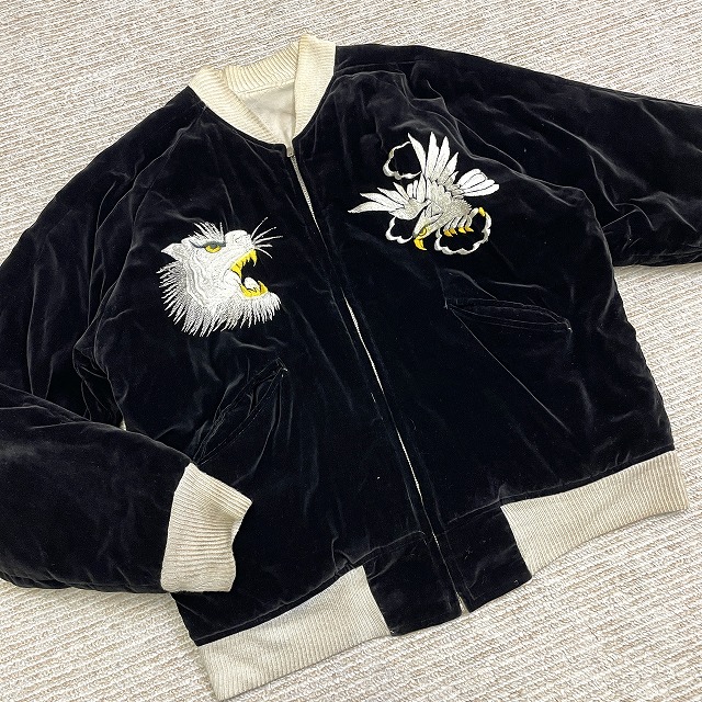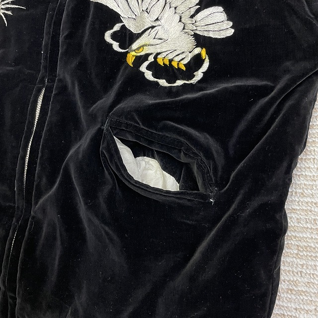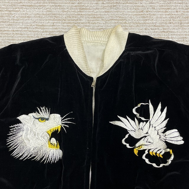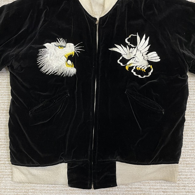 「別珍×サテン、ブラック、虎/鷹/龍/地図」
