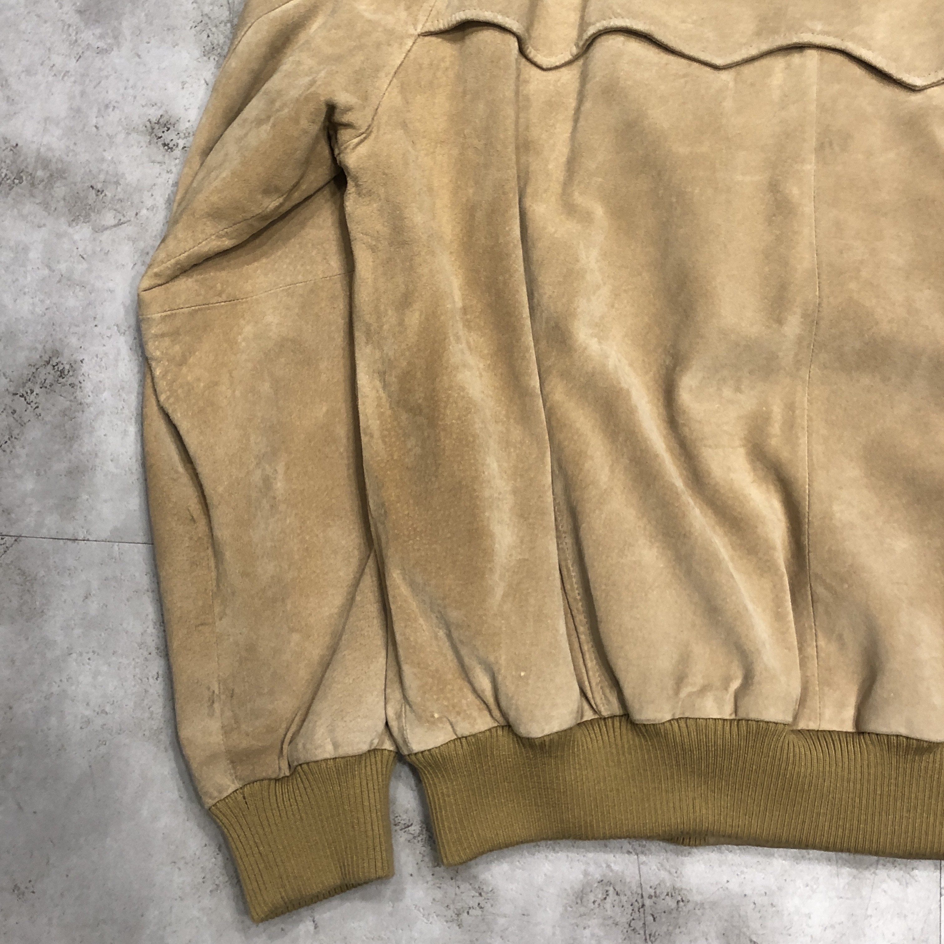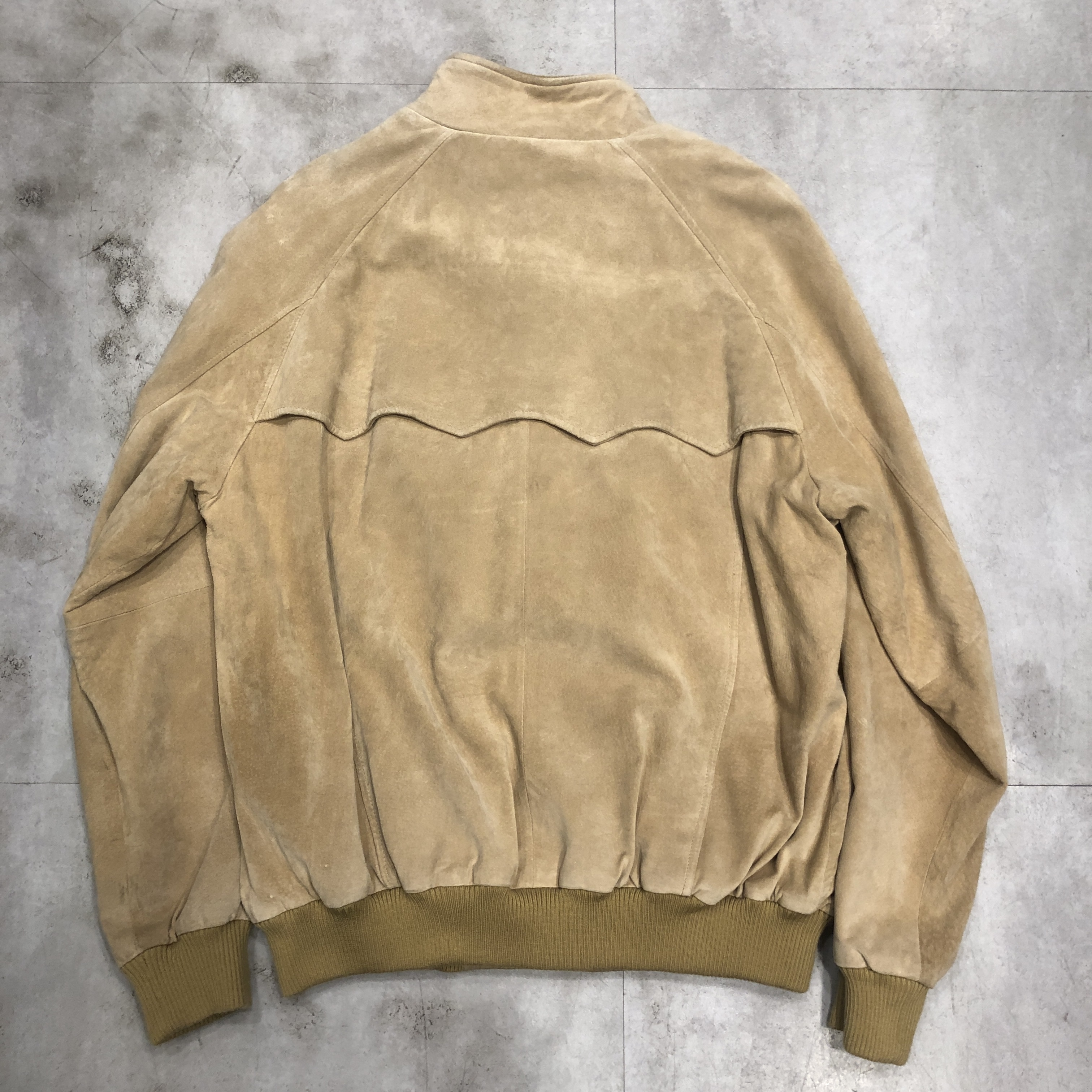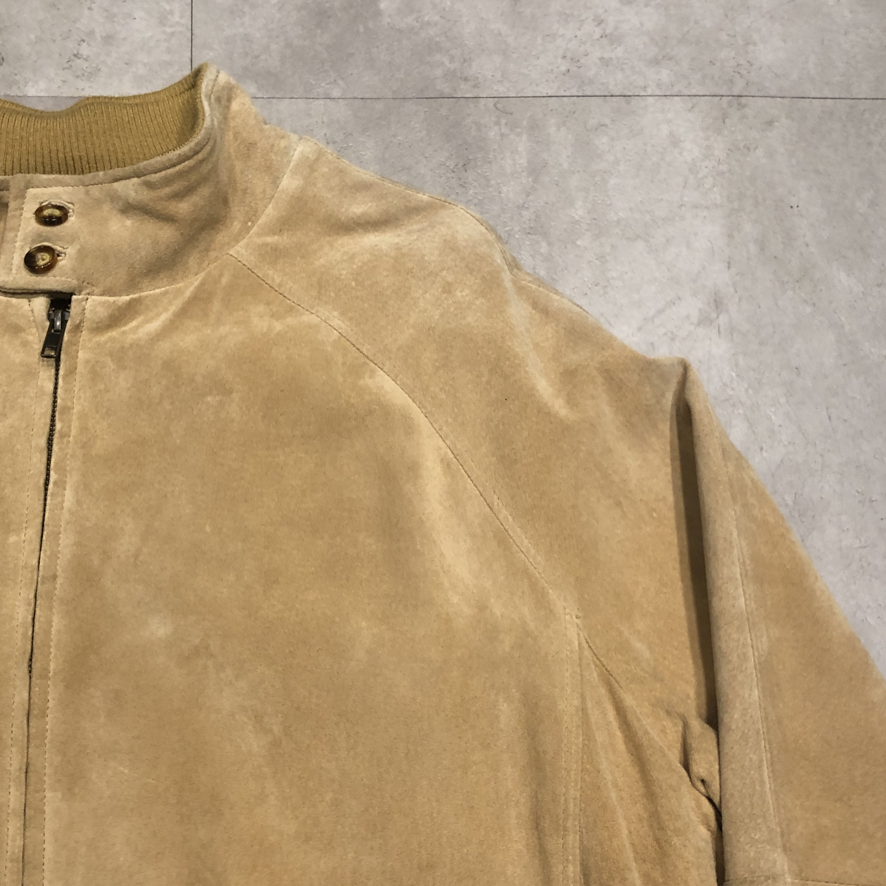 スエード特有の色ムラや経年変化も、このジャケットの魅力。
