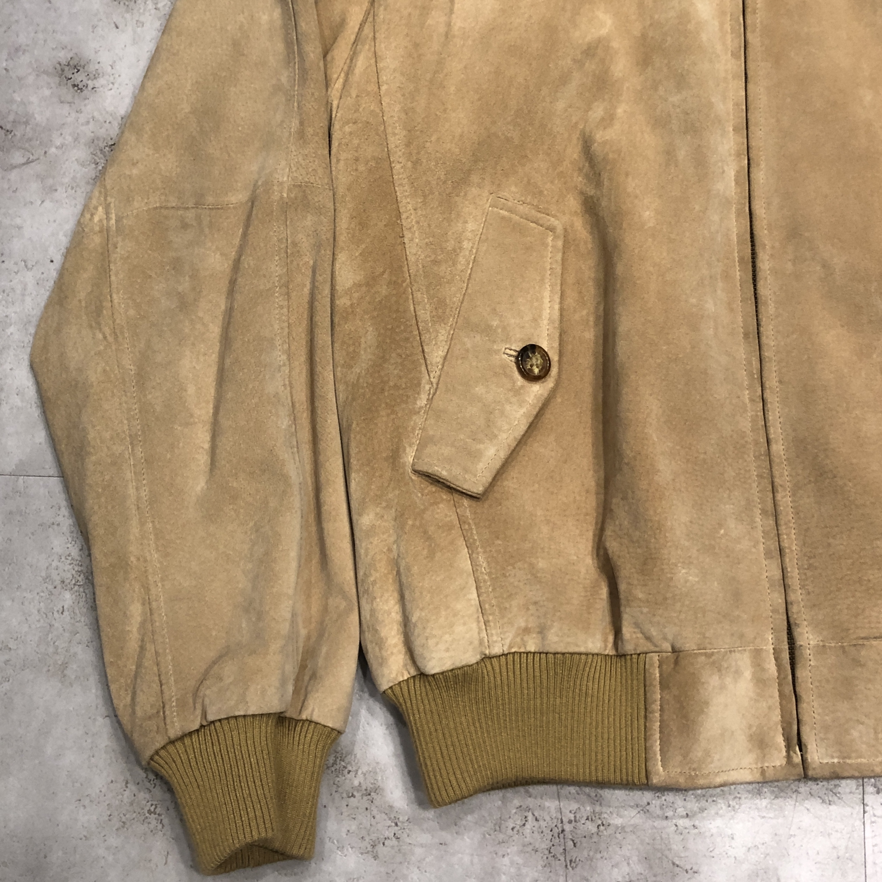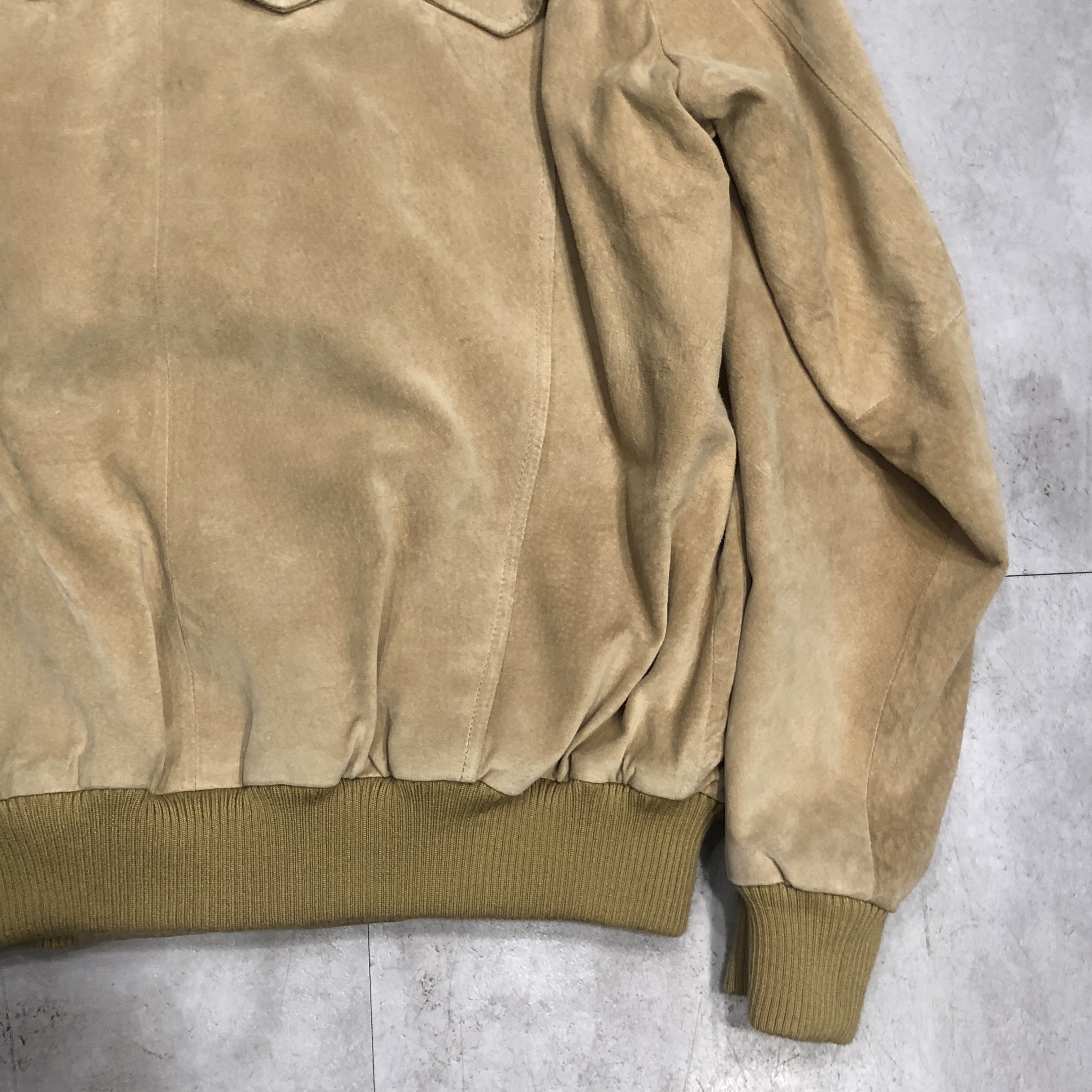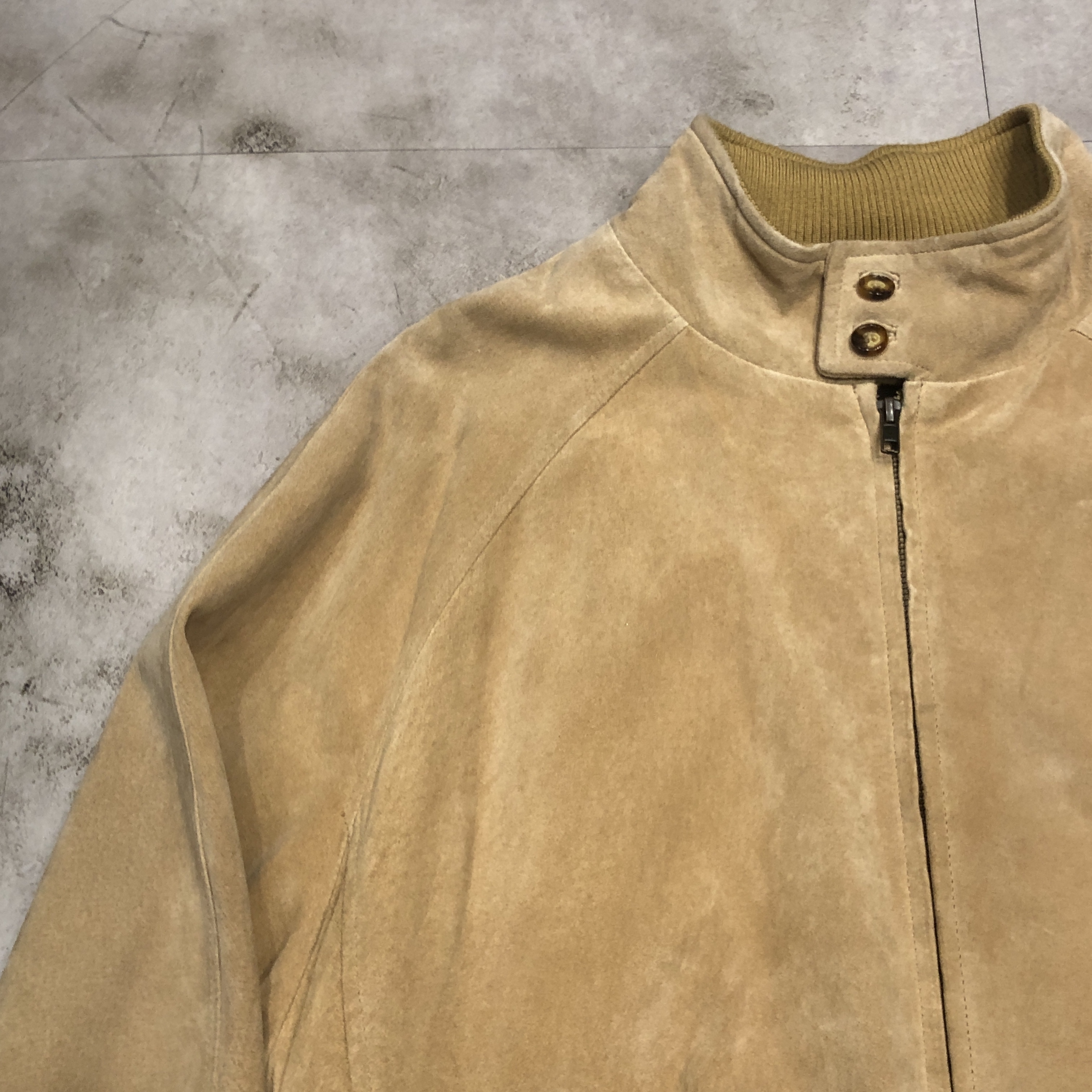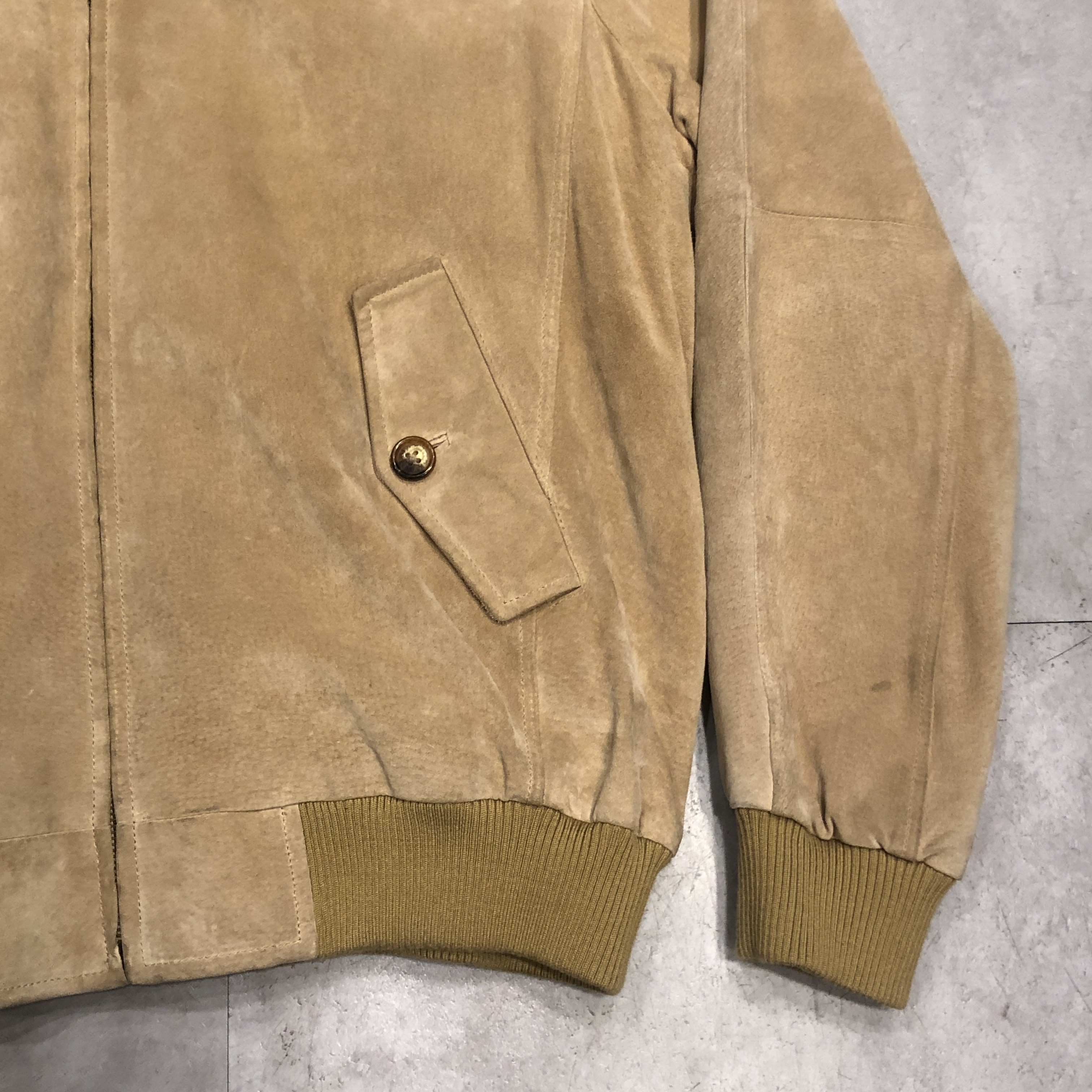スエード特有の色ムラや経年変化も、このジャケットの魅力。