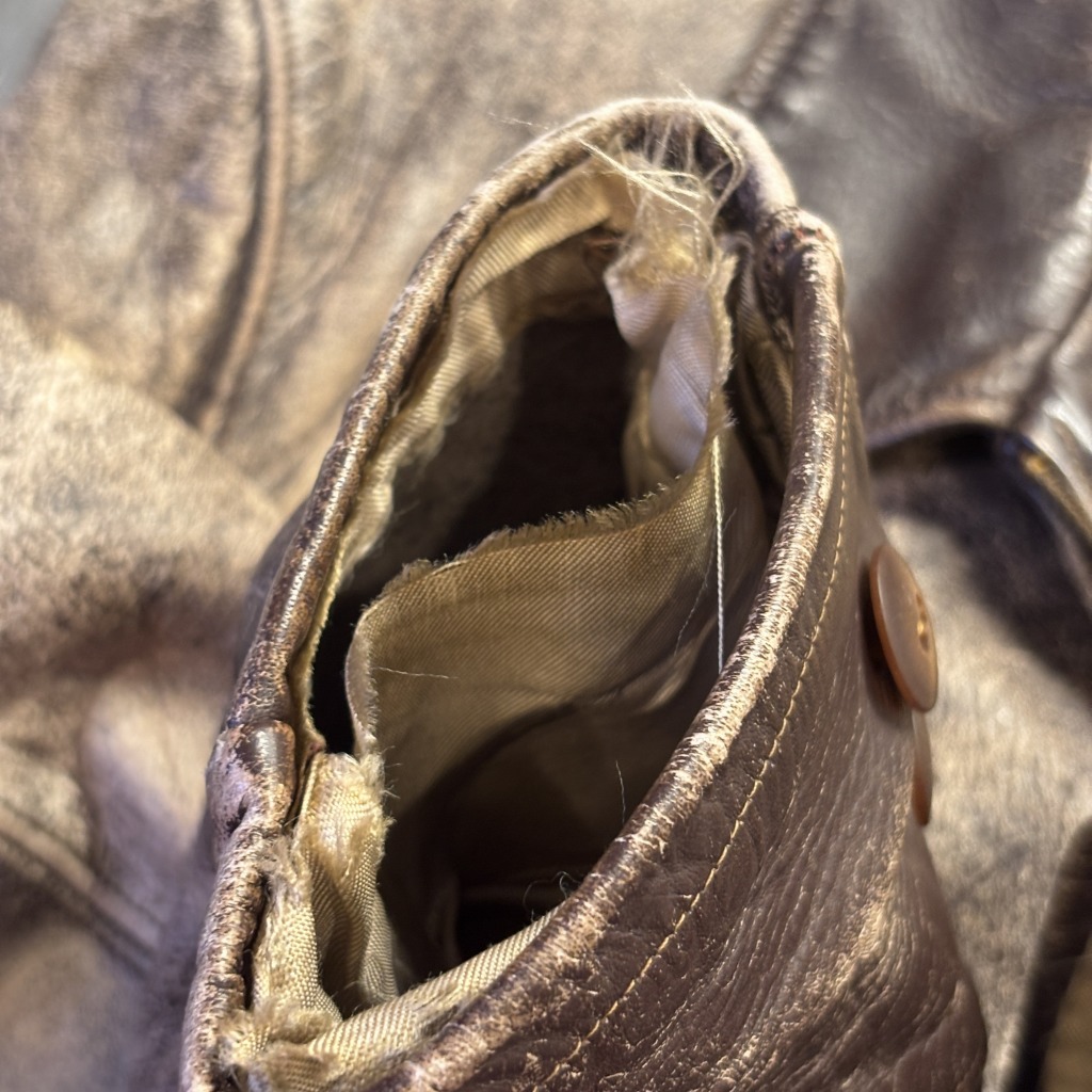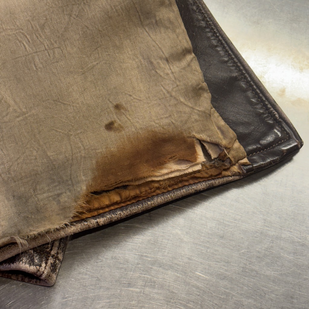 - 画像の様に汚れ、破れ、スレ、シワなど全体的に年代相応の着用感ございますが、ヴィンテージ慣れされた方でしたら問題無く着用可能な状態です。