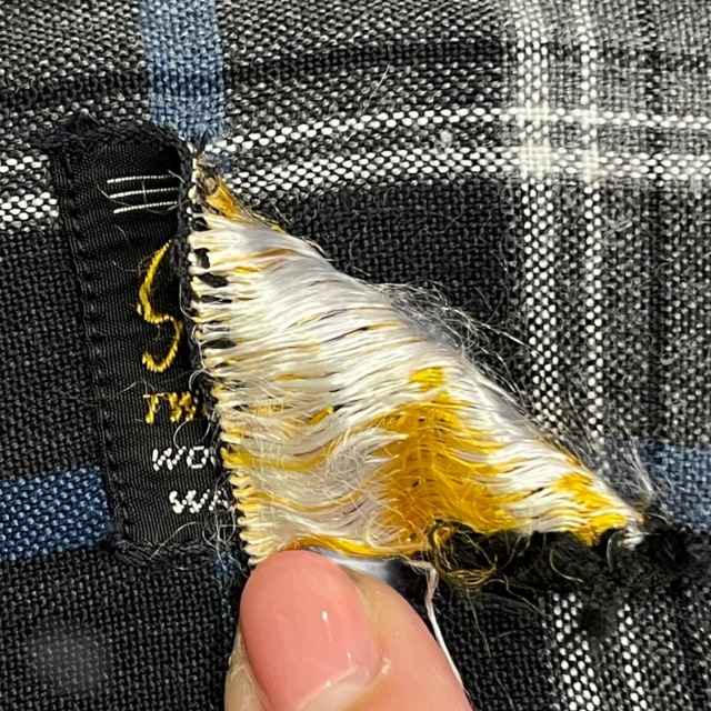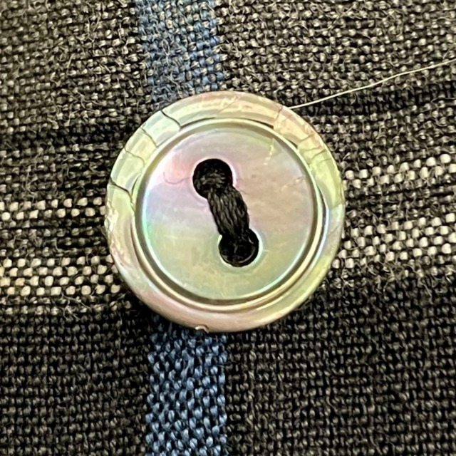 肩や前身頃に数ヶ所リペアがあり、ボタンに欠けや割れがございます。