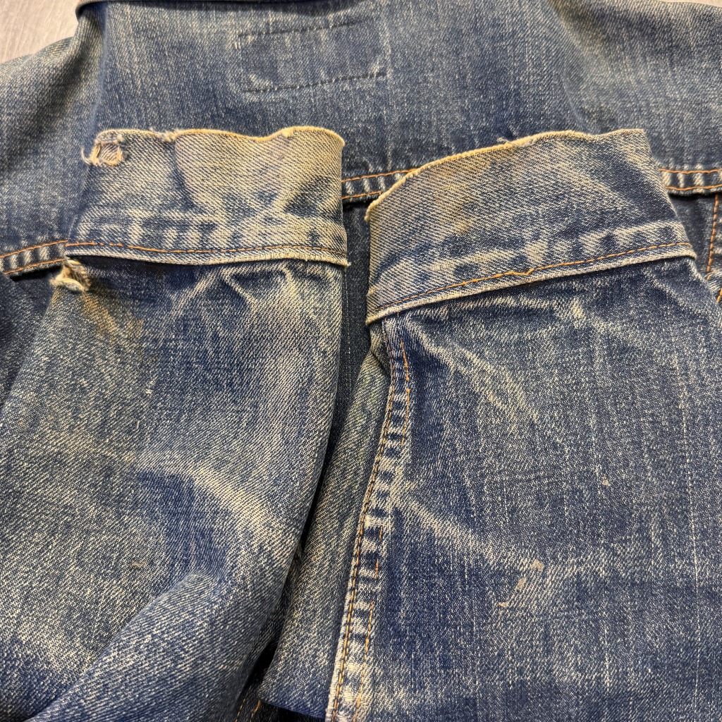 - 一部ダメージ、ステッチ抜けなど年代特有の着用感が御座いますが、ヴィンテージに慣れている方でしたら問題なく着用可能な状態です。