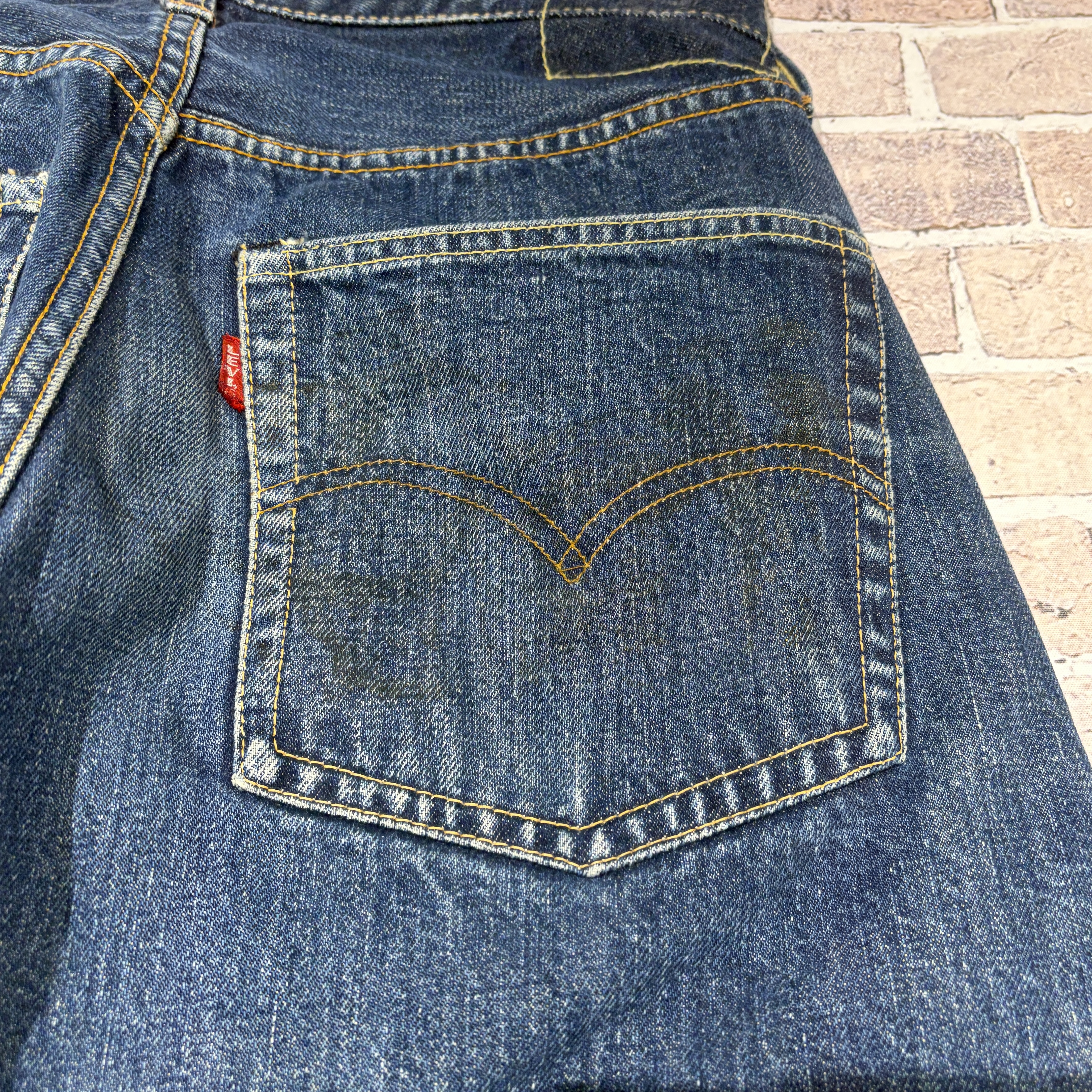 「WAIST SINGLE、色残り7割程度、実寸 W29 L27.5」