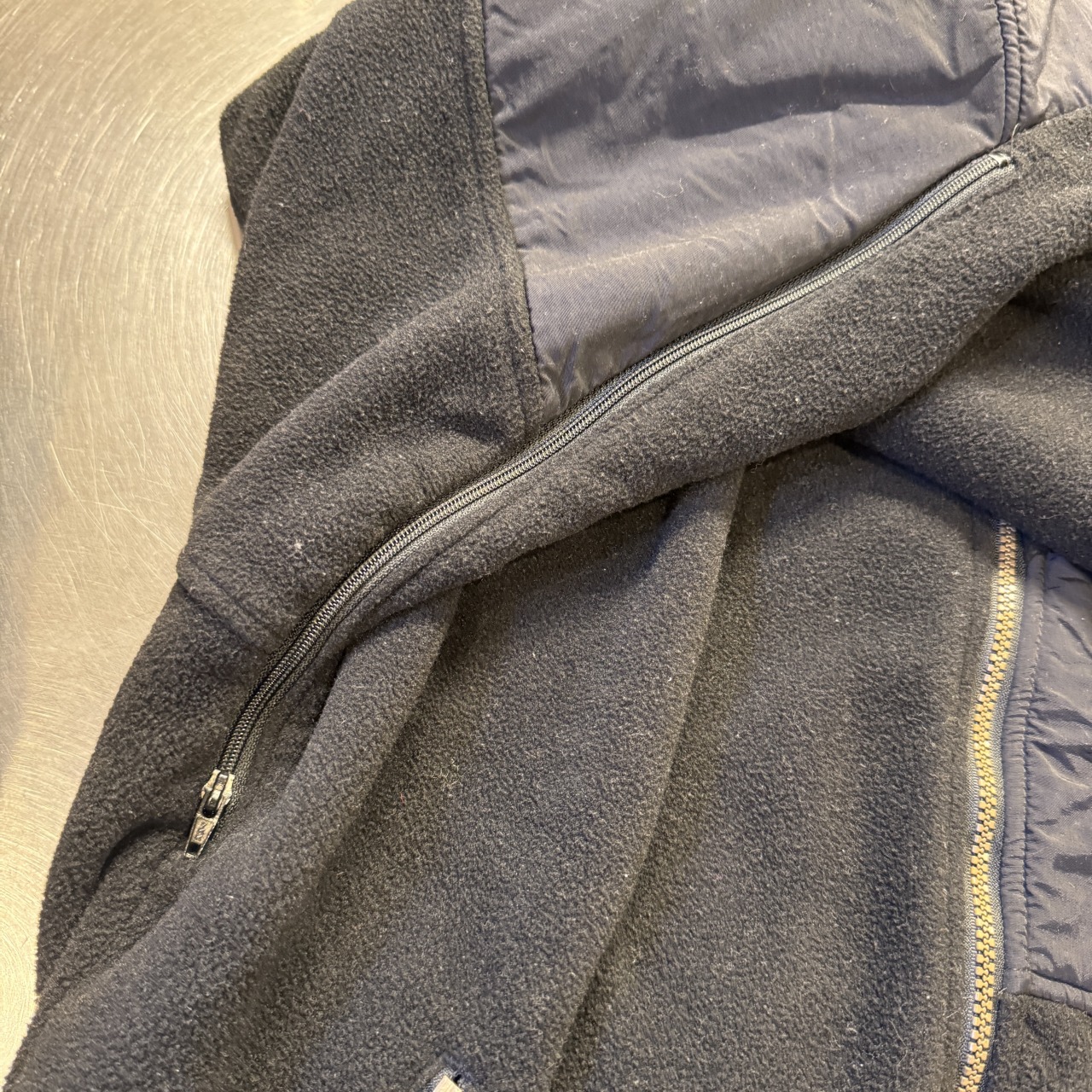胸元片方に逆ハの字ジップが付くブラックフリースジャケット!