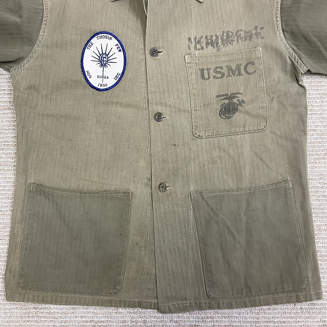 - 画像のように、色褪せ、汚れ、擦れがあり、右袖や袖口に破れ等のダメージがございます。