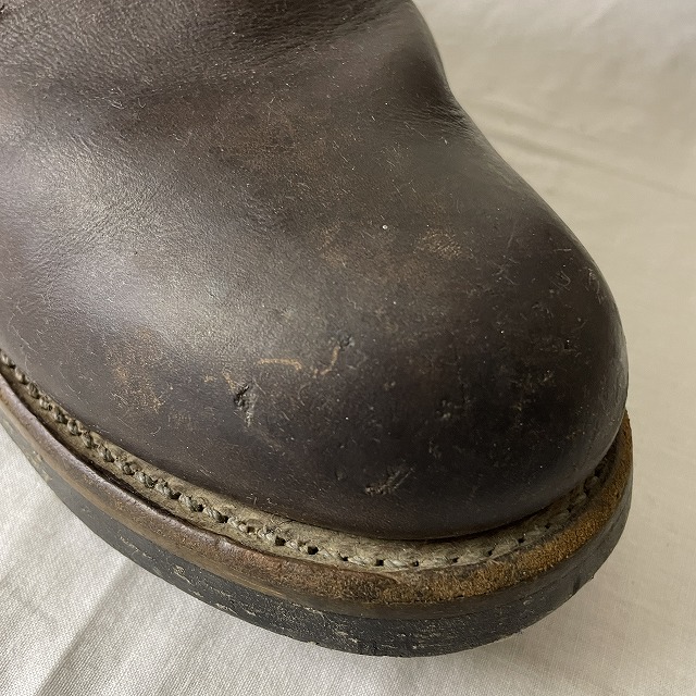 - 画像のように、スレ、キズ、汚れがあり、右足かかと上付近の縫製にステッチ抜けがございます。