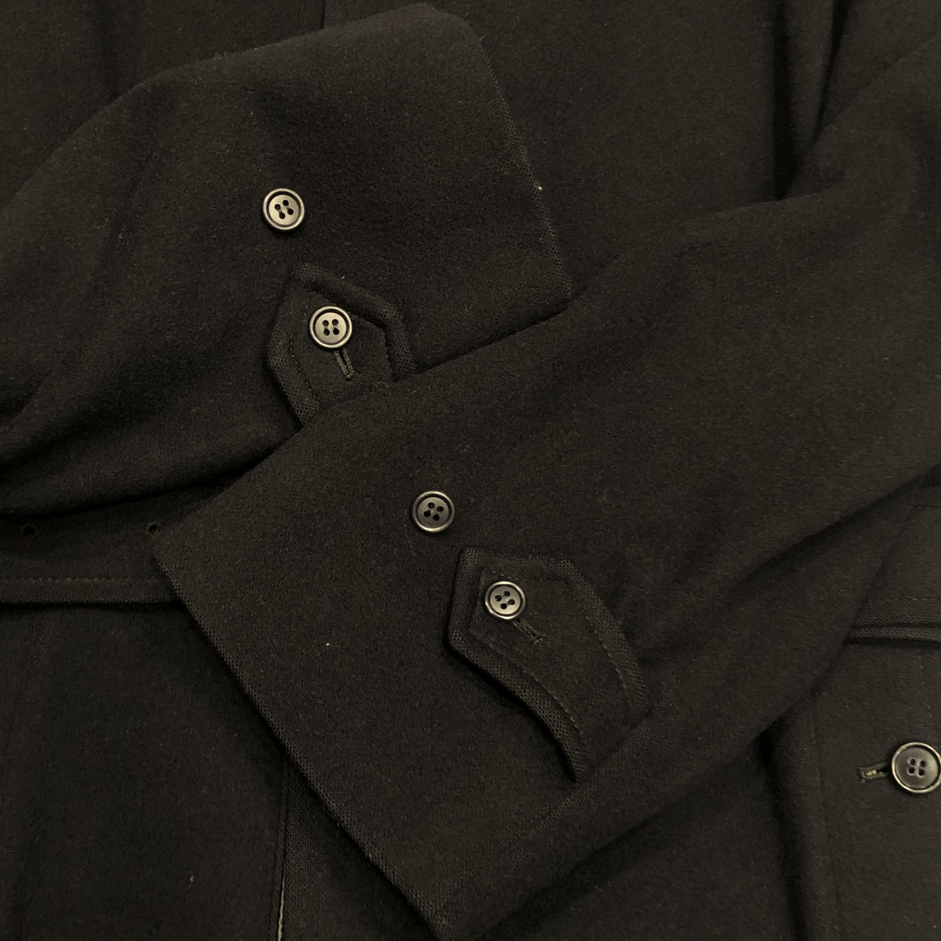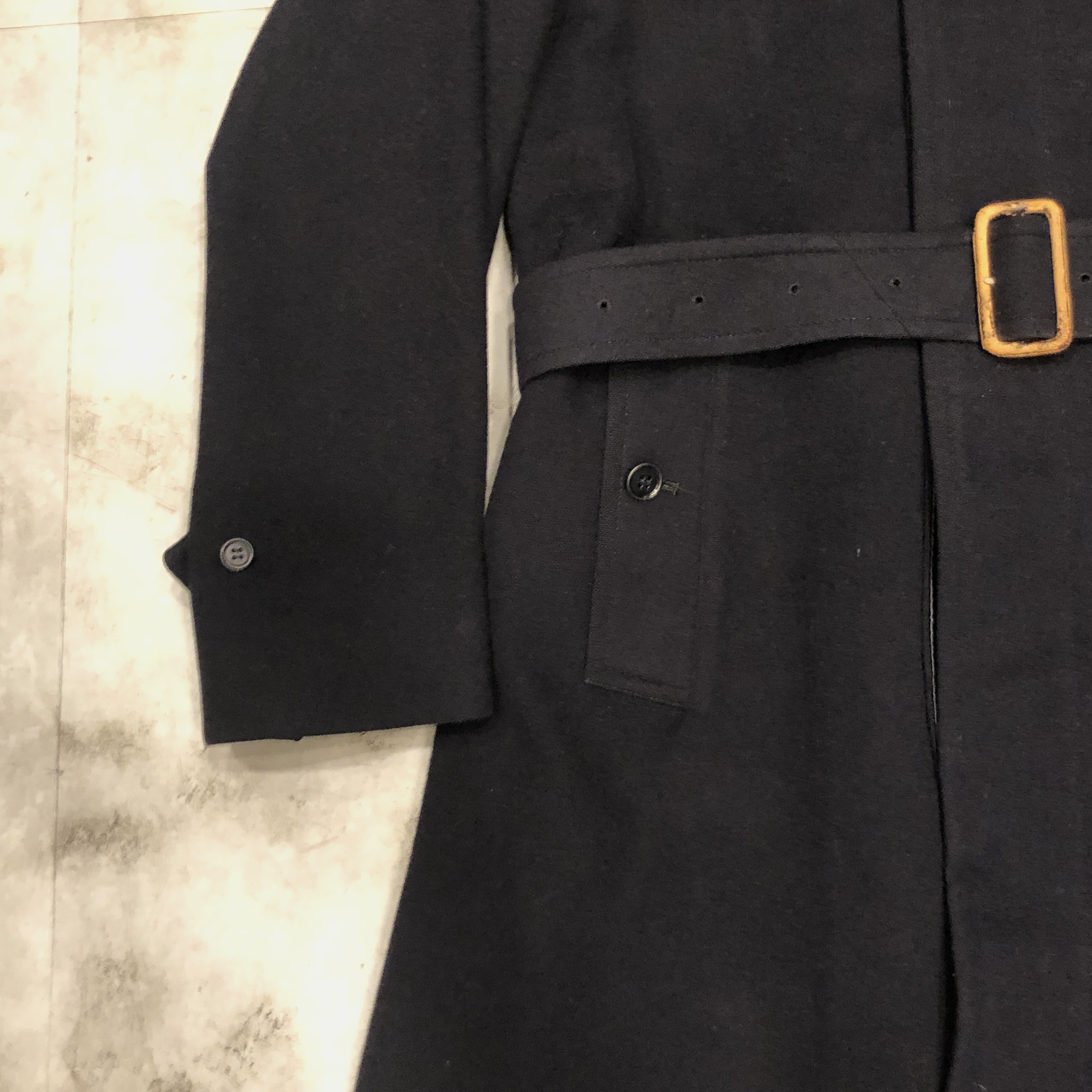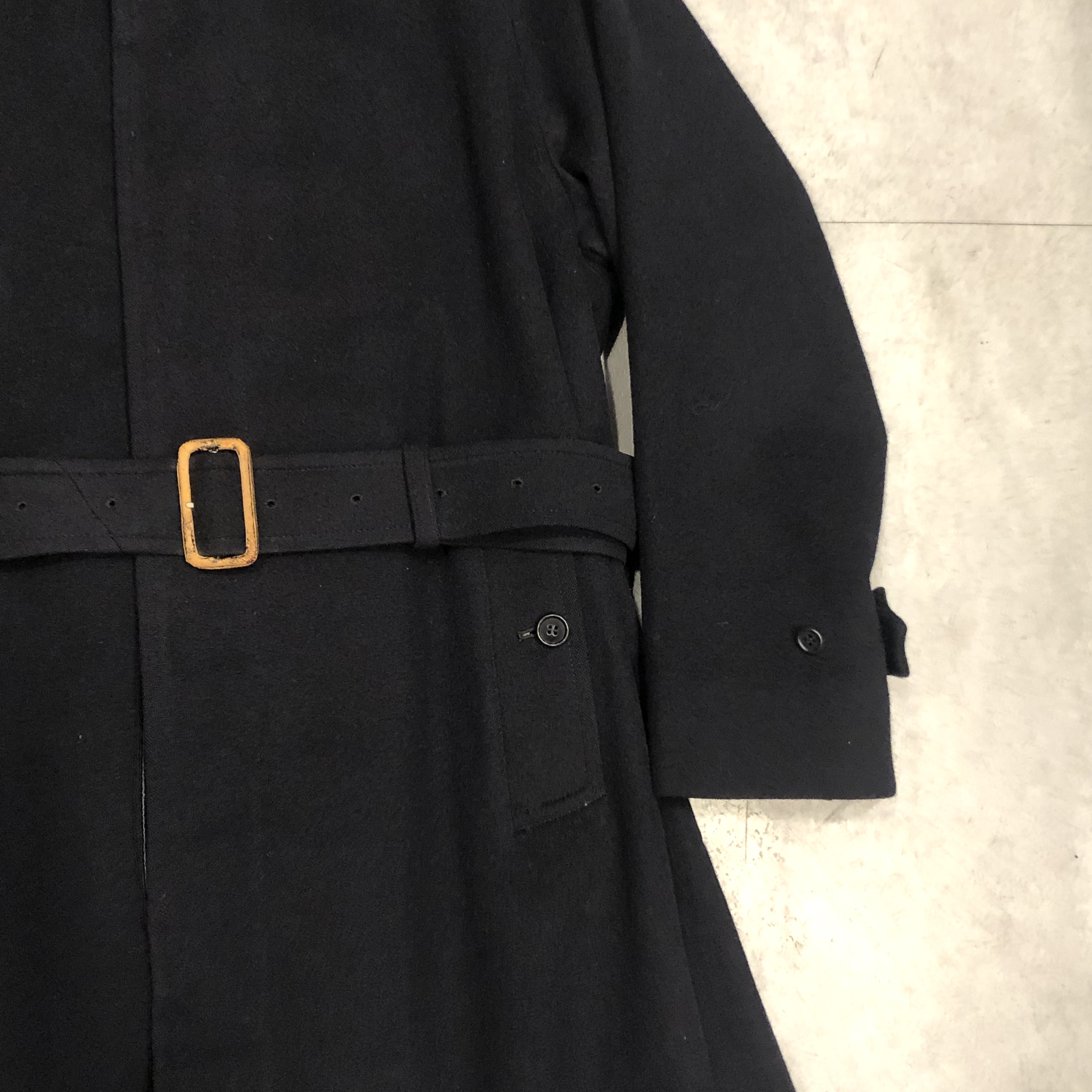 - 年代相応の着用感、生地の摩耗、ボタン横のダメージ、ボタンのダメージ、バックルレザー部分の剥げ、袖口のほんの小さなダメージ等が画像の様にございますが、古着慣れされている方でしたら問題なくお使いいただける範囲です。