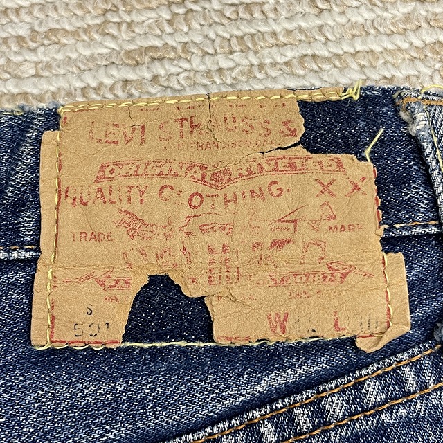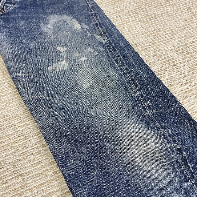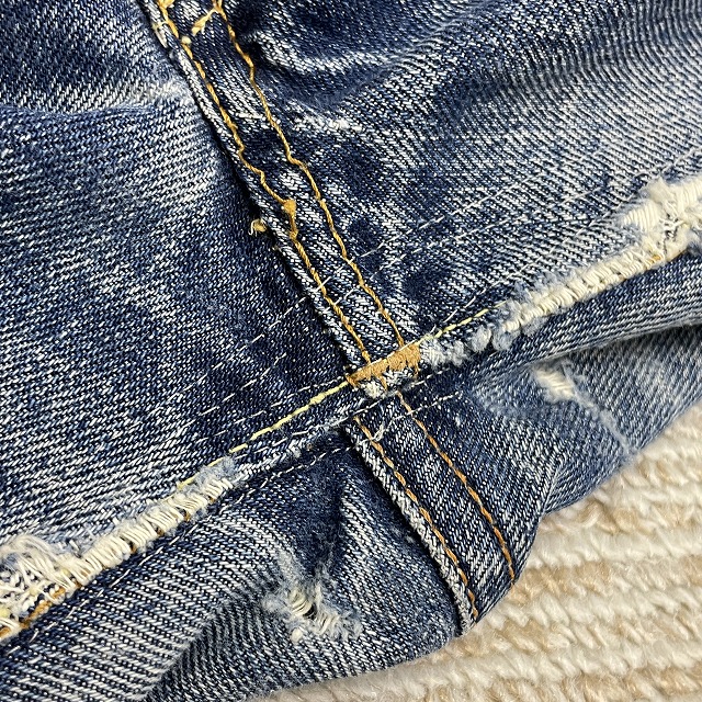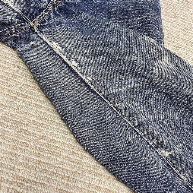 前右腿付近、股、裾等にリペアやリステッチがございます。