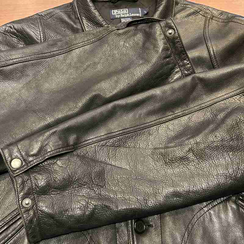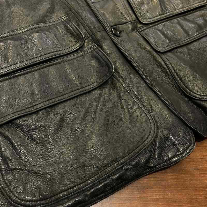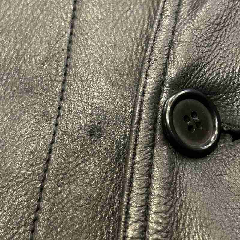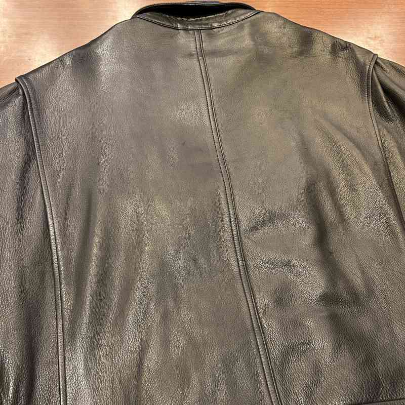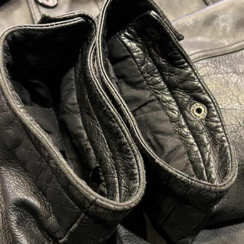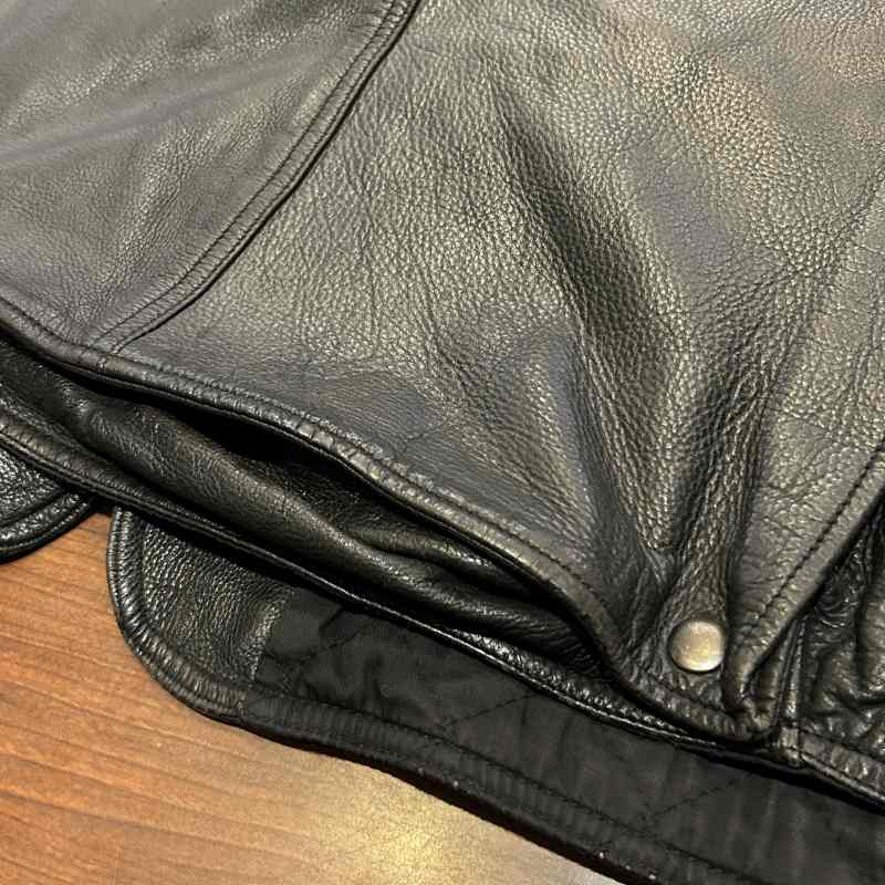 - レザー特有の傷やシワ、裏地のステッチ抜けがございます。その他に目立つ汚れやダメージは無く古着慣れされた方でしたら問題無く着用していただける状態です。