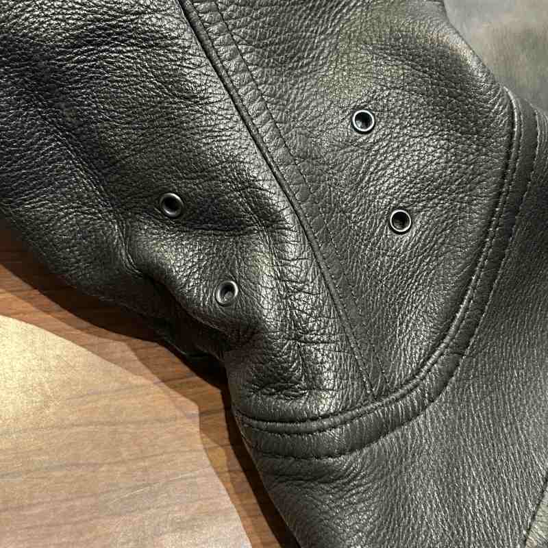 - コットン地のものはよく見かけますが、こちらはオールレザータイプ!