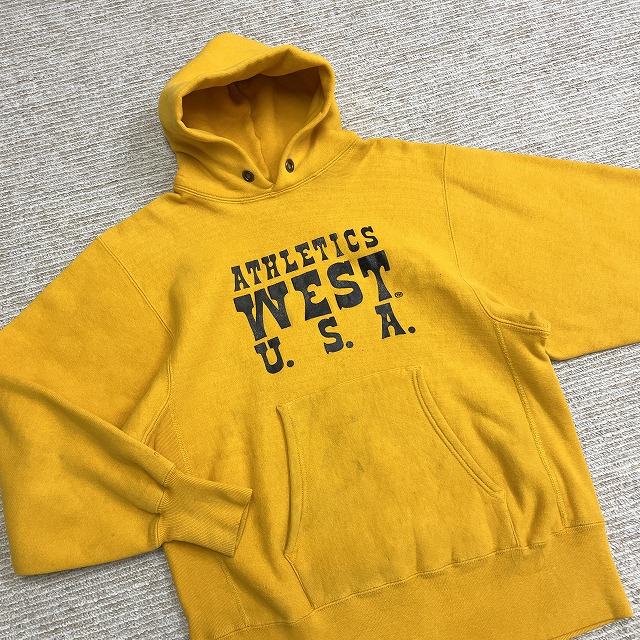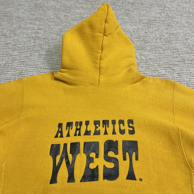 「単色タグ、両面プリント、ATHLETICS WEST U.S.A、サイズM」
